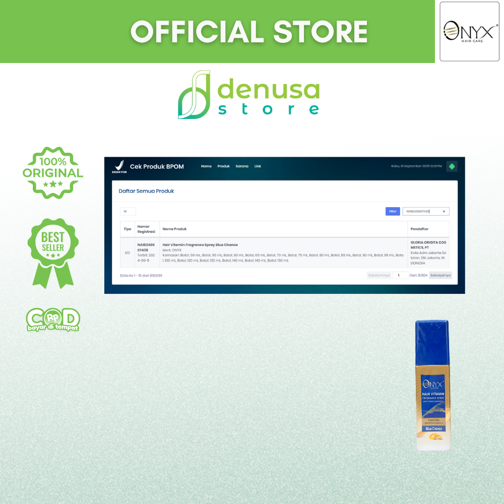 Beli ONYX Hair Vitamin Fragrance Spray Blue Chance 120 ml hanya di denusastore.com. Rambut segar, sehat, dan harum setiap saat.