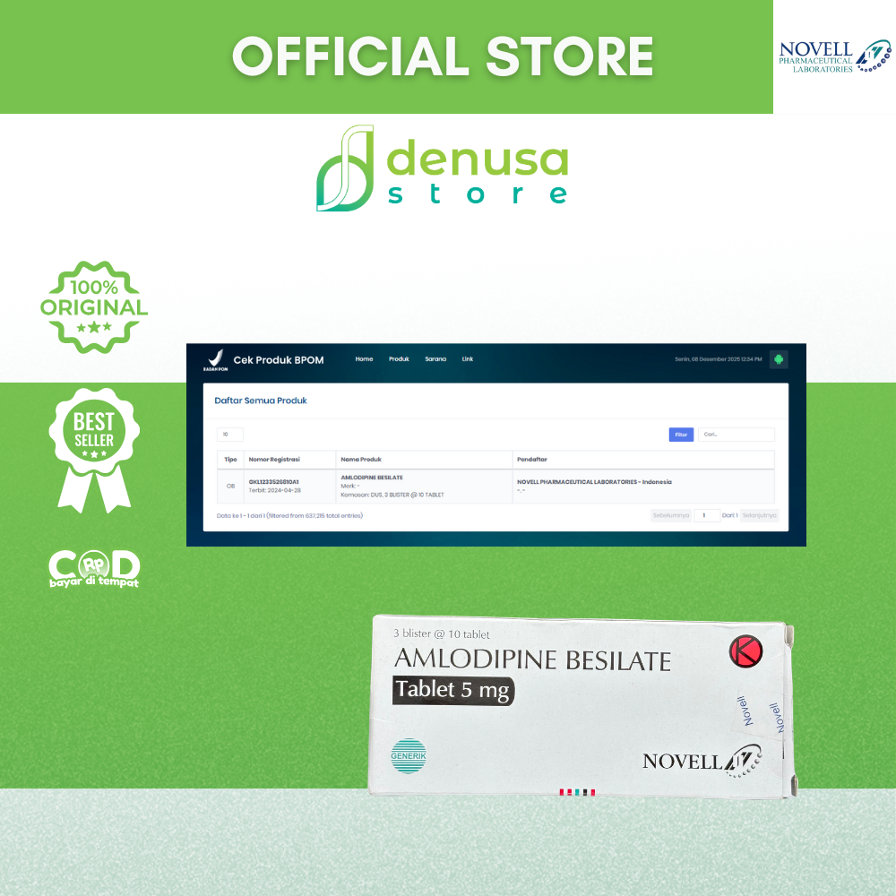 Dapatkan Amlodipine Besilate 5mg 1 Blister 10 Tablet hanya di denusastore.com. Produk resmi, berkualitas, dan aman.