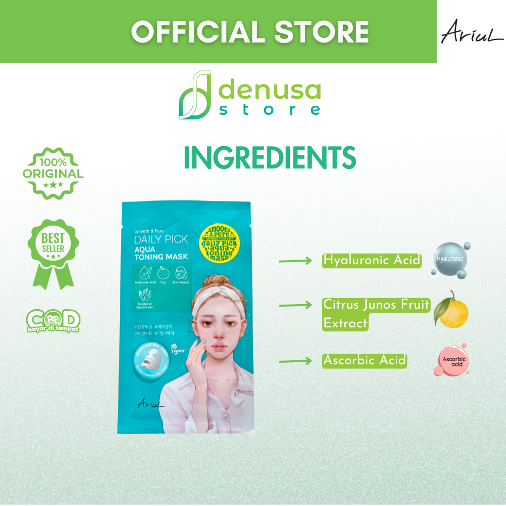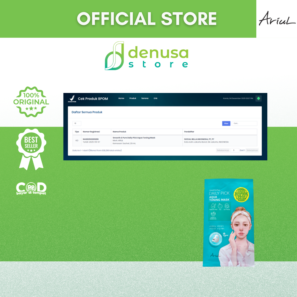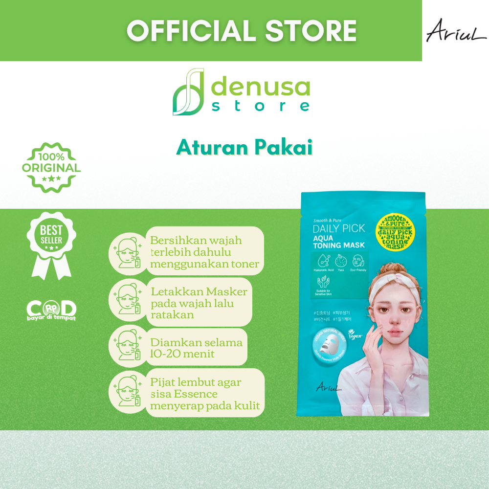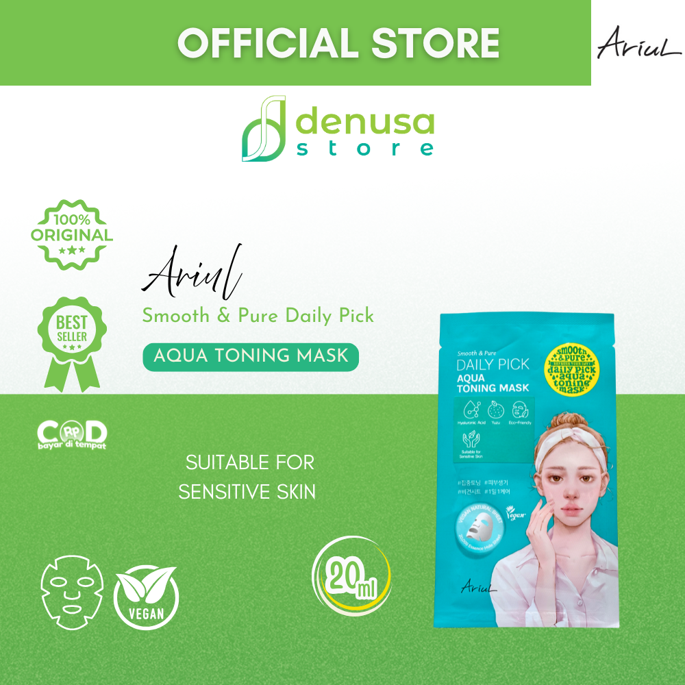 Beli ARIUL Smooth n Pure Daily Pick Aqua Toning Mask 20ml hanya didenusastore.com. Masker harian yang praktis, menyegarkan, dan memberikan hidrasi optimal untuk kulitmu setiap hari!