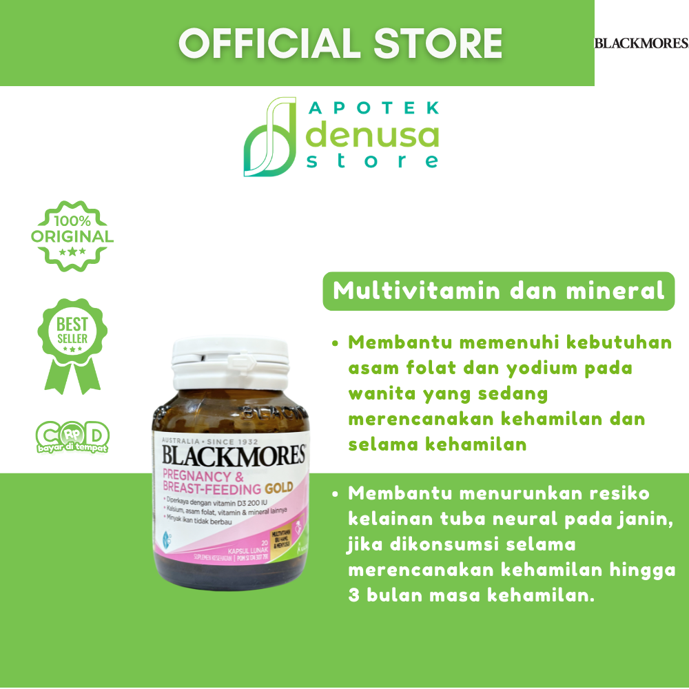 Beli BLACKMORES Pregnancy n Breast Feeding Gold 20 Kapsul Lunak hanya di denusastore.com. Solusi praktis untuk menjaga kesehatan ibu dan bayi.