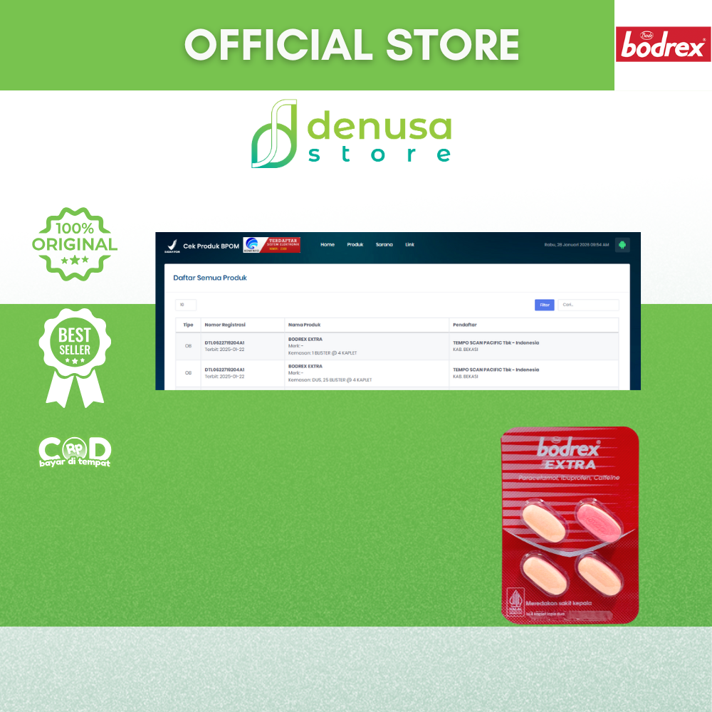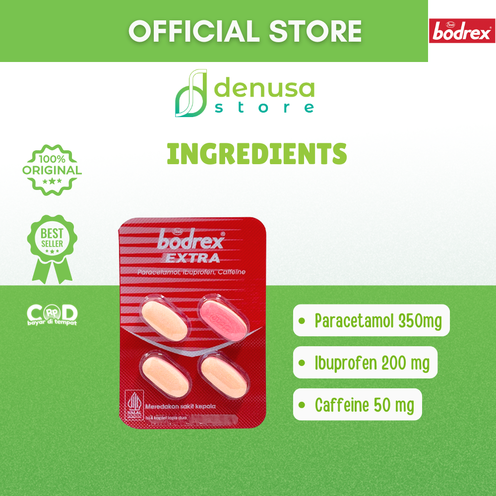 Beli BODREX Extra 1 Blister 4 Kaplet Lapis Dua hanya di denusastore.com. Solusi cepat untuk. Meredakan nyeri dan demam setiap hari.