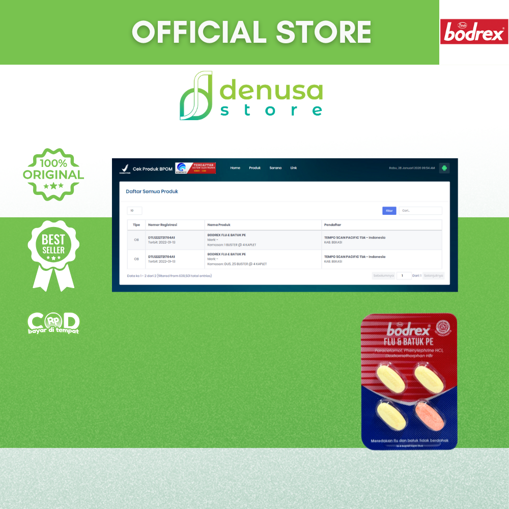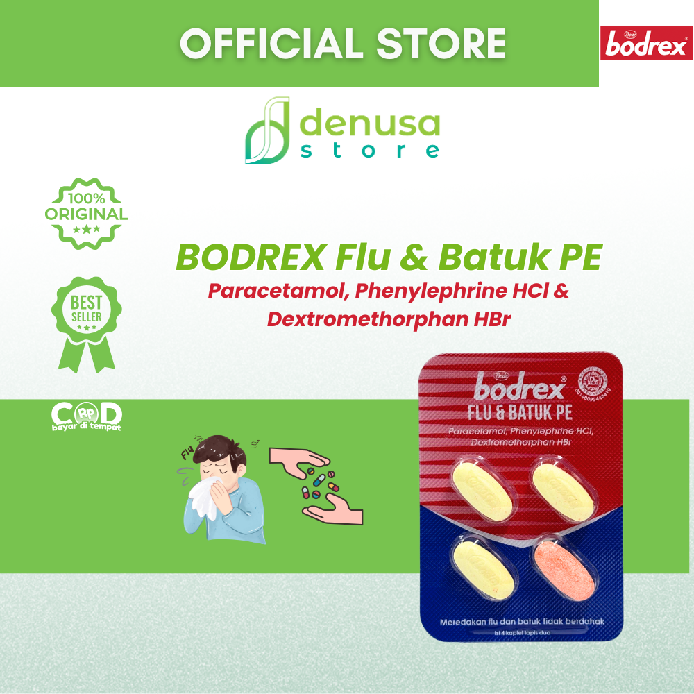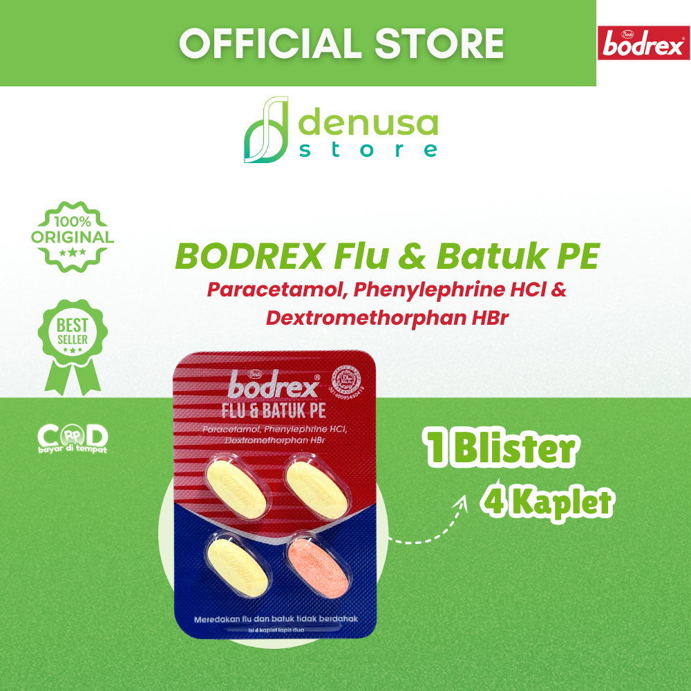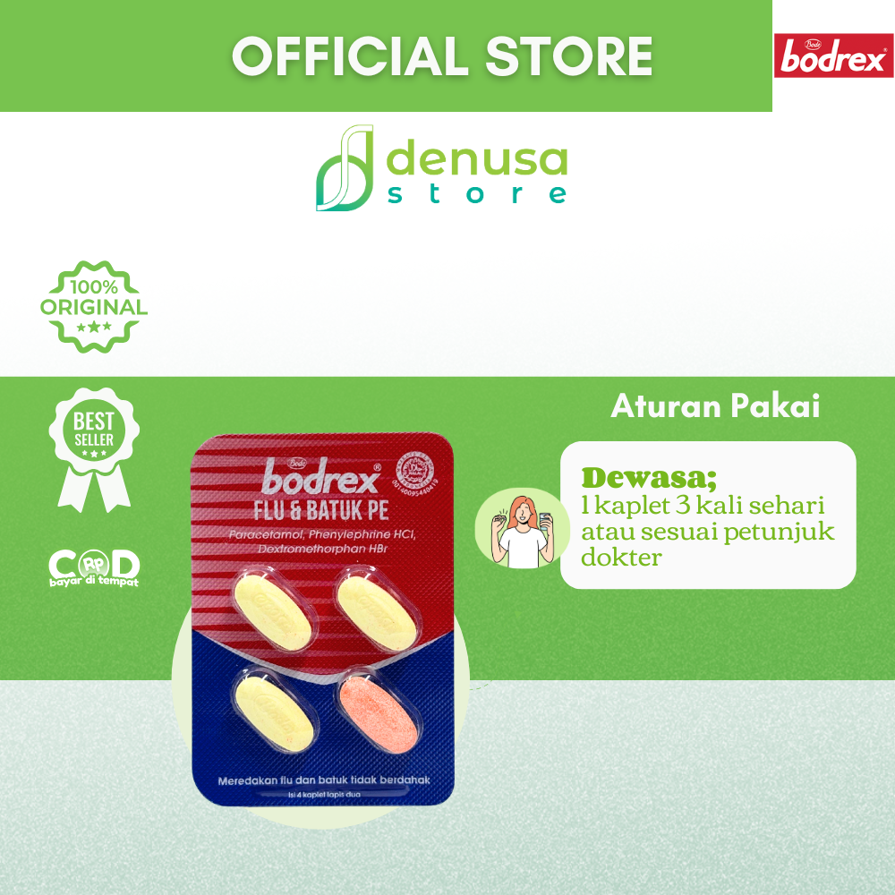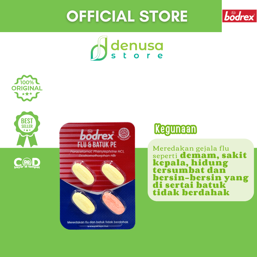 Beli BODREX Flu n Batuk PE 1 Blister 4 Kaplet Lapis Dua hanya di denusastore.com. Solusi lengkap untuk meredakan gejala flu dan batuk setiap hari.