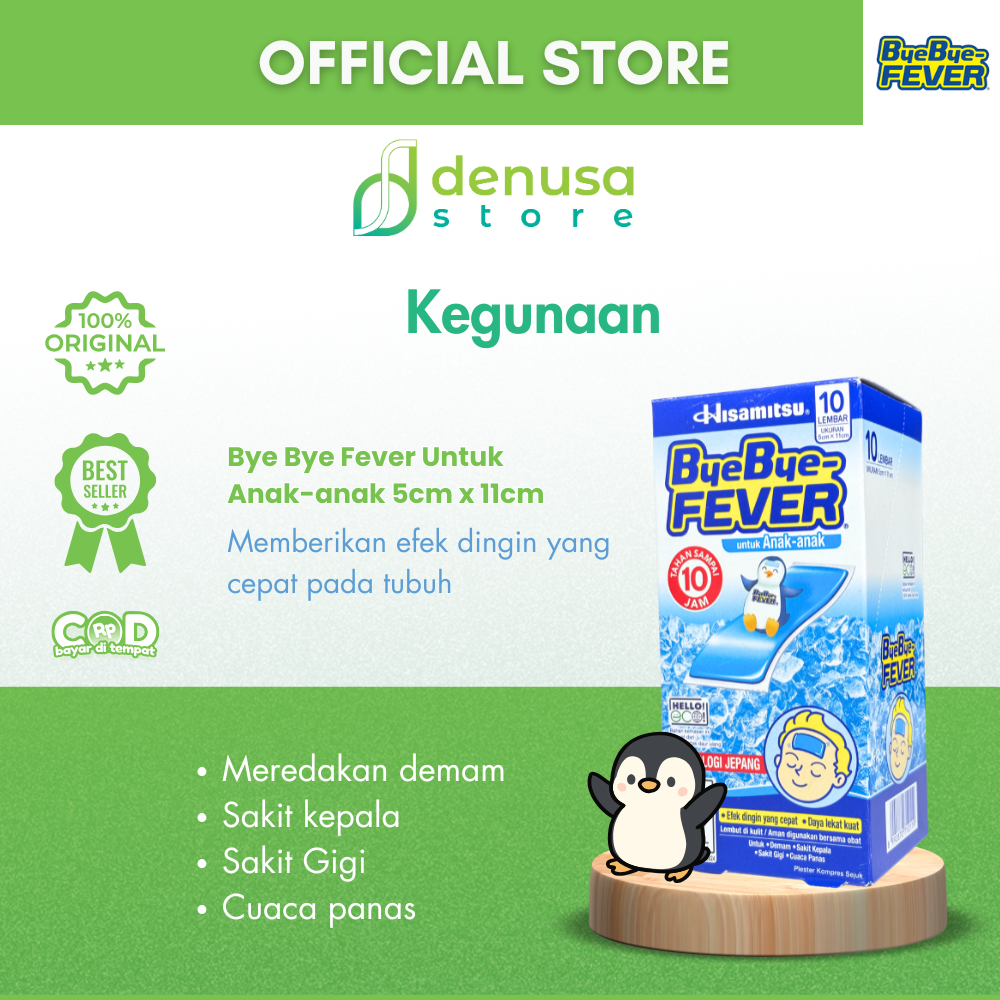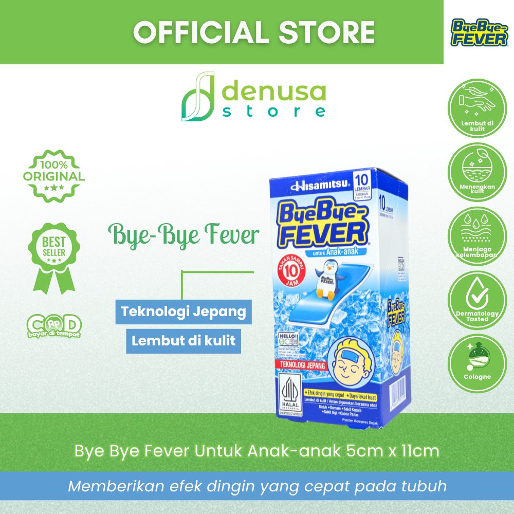 Beli Bye Bye Fever Untuk Anak-Anak 5cm x 11cm 1 Kotak 10 Lembar hanya di denusastore.com. Dapatkan penurun panas. Aman, praktis, dan nyaman untuk anak-anak saat demam.