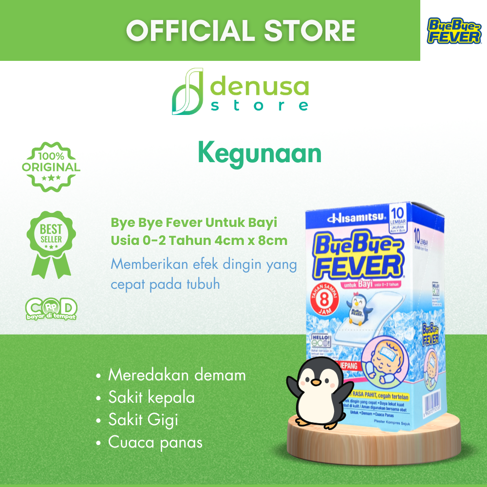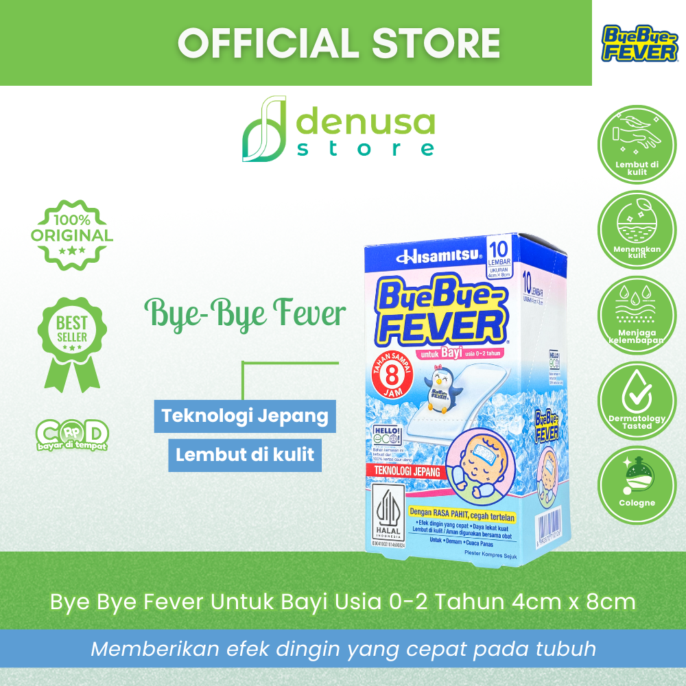 Beli Bye Bye Fever Untuk Bayi Usia 0-2 Tahun 4cm x 8cm 1 Kotak 10 Lembar hanya di denusastore.com. Dapatkan penurun panas yang aman, nyaman, dan praktis untuk bayi saat demam.