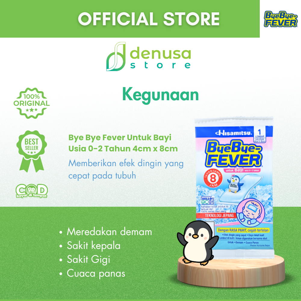 Beli Bye Bye Fever Untuk Bayi Usia 0-2 Tahun 4cm x 8cm 1 Lembar hanya di denusastore.com. Dapatkan penurun panas yang aman, nyaman, dan praktis untuk bayi saat demam.