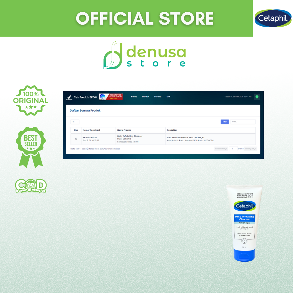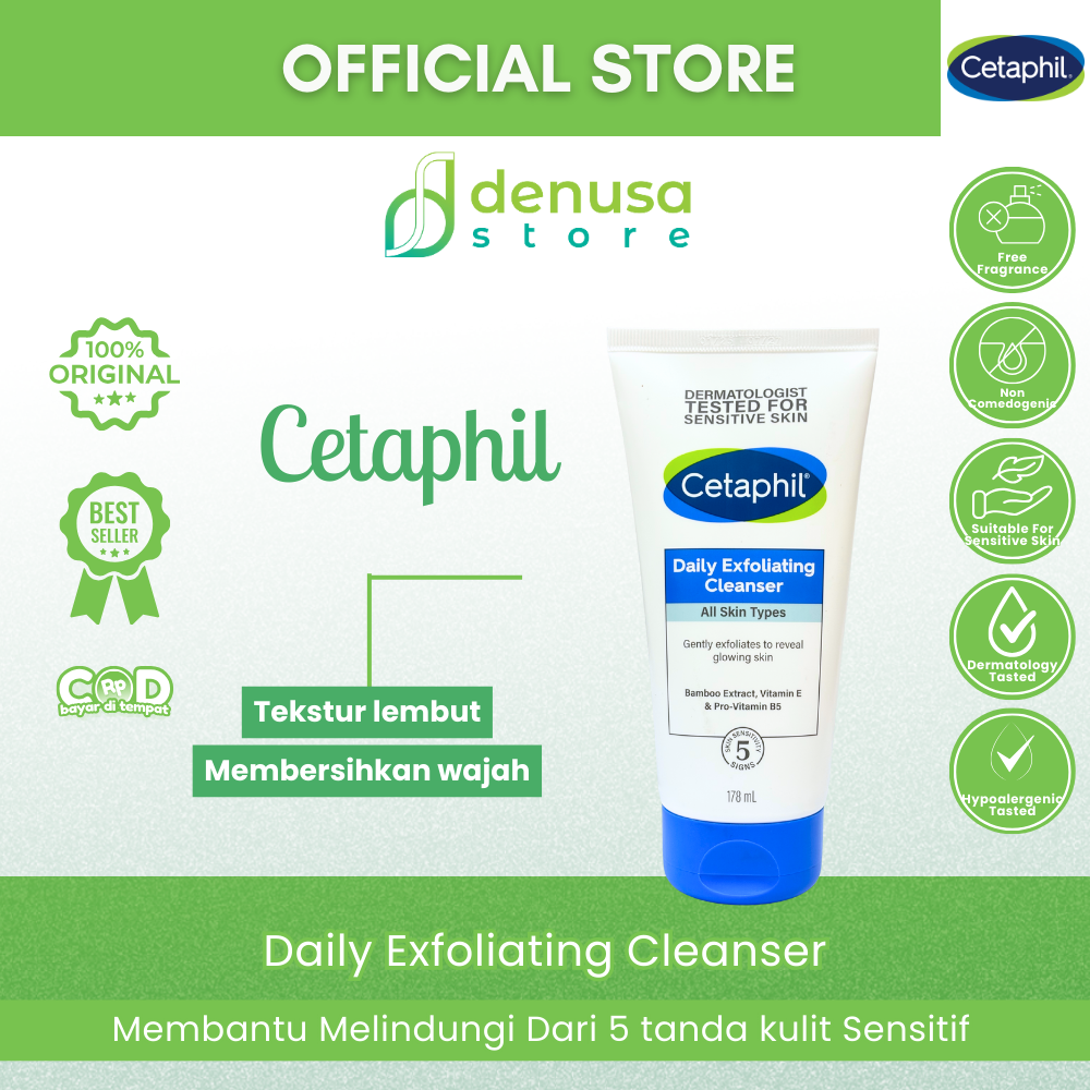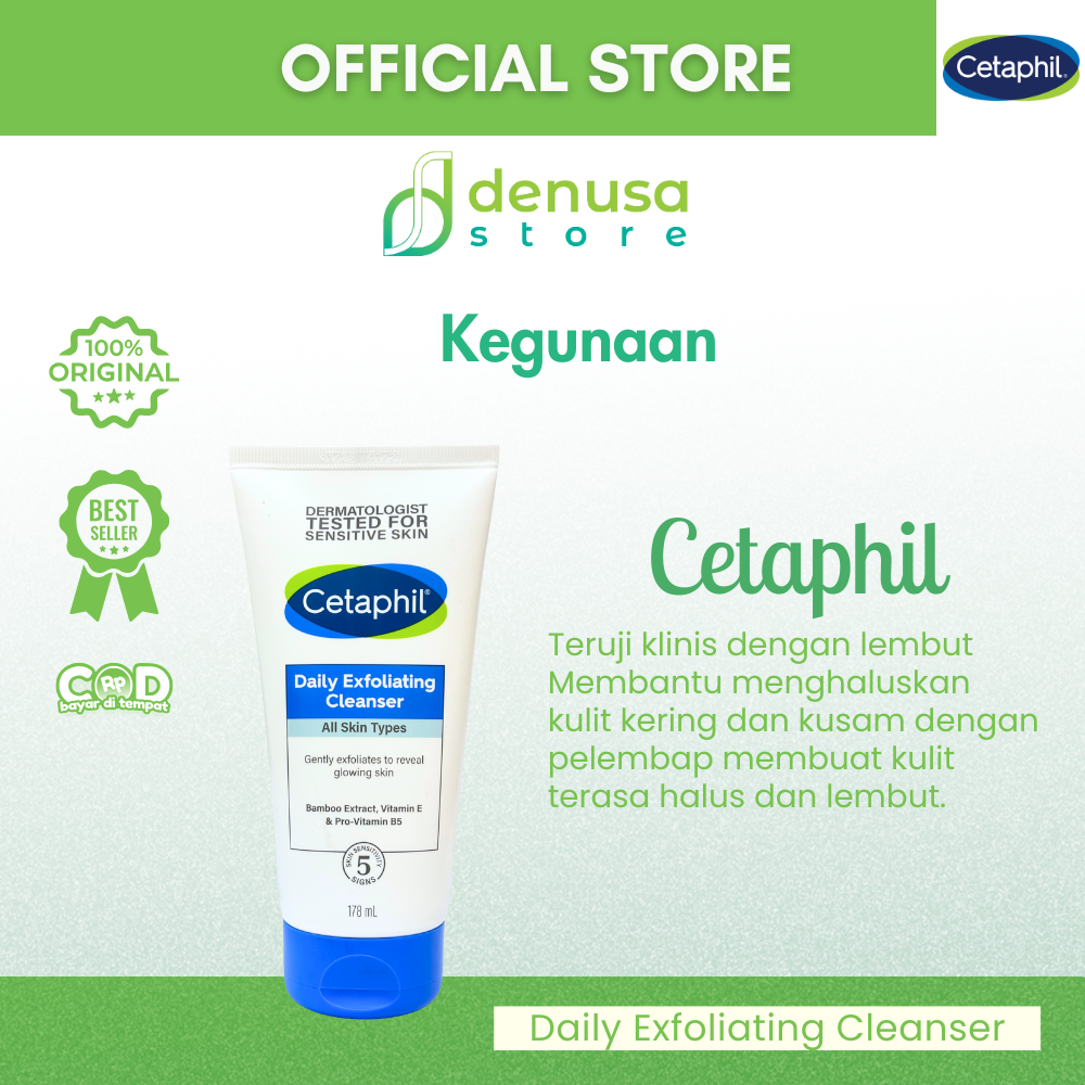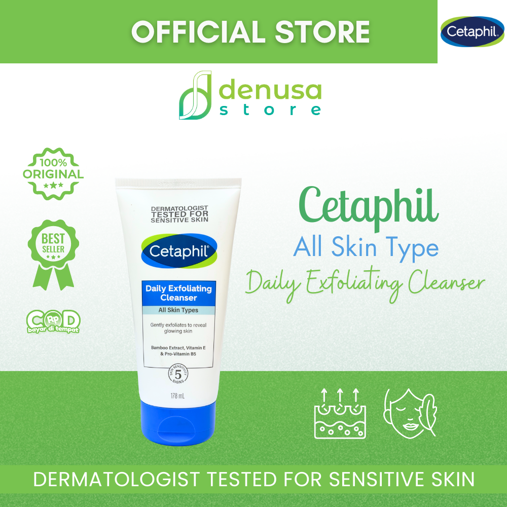 Beli CETAPHIL Daily Exfoliating Cleanser All Skin Types 178ml hanya di denusastore.com. Dan jaga kebersihan kulit wajah dengan perawatan yang lembut dan terpercaya..