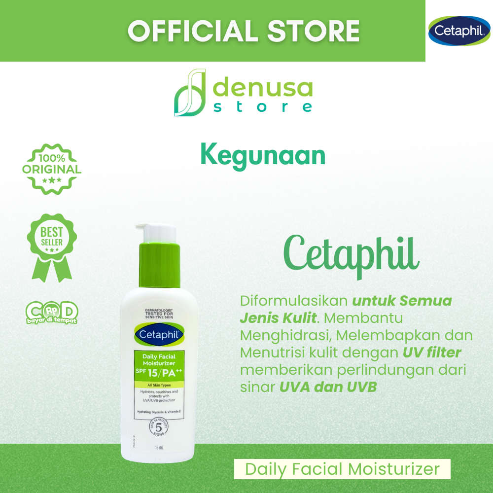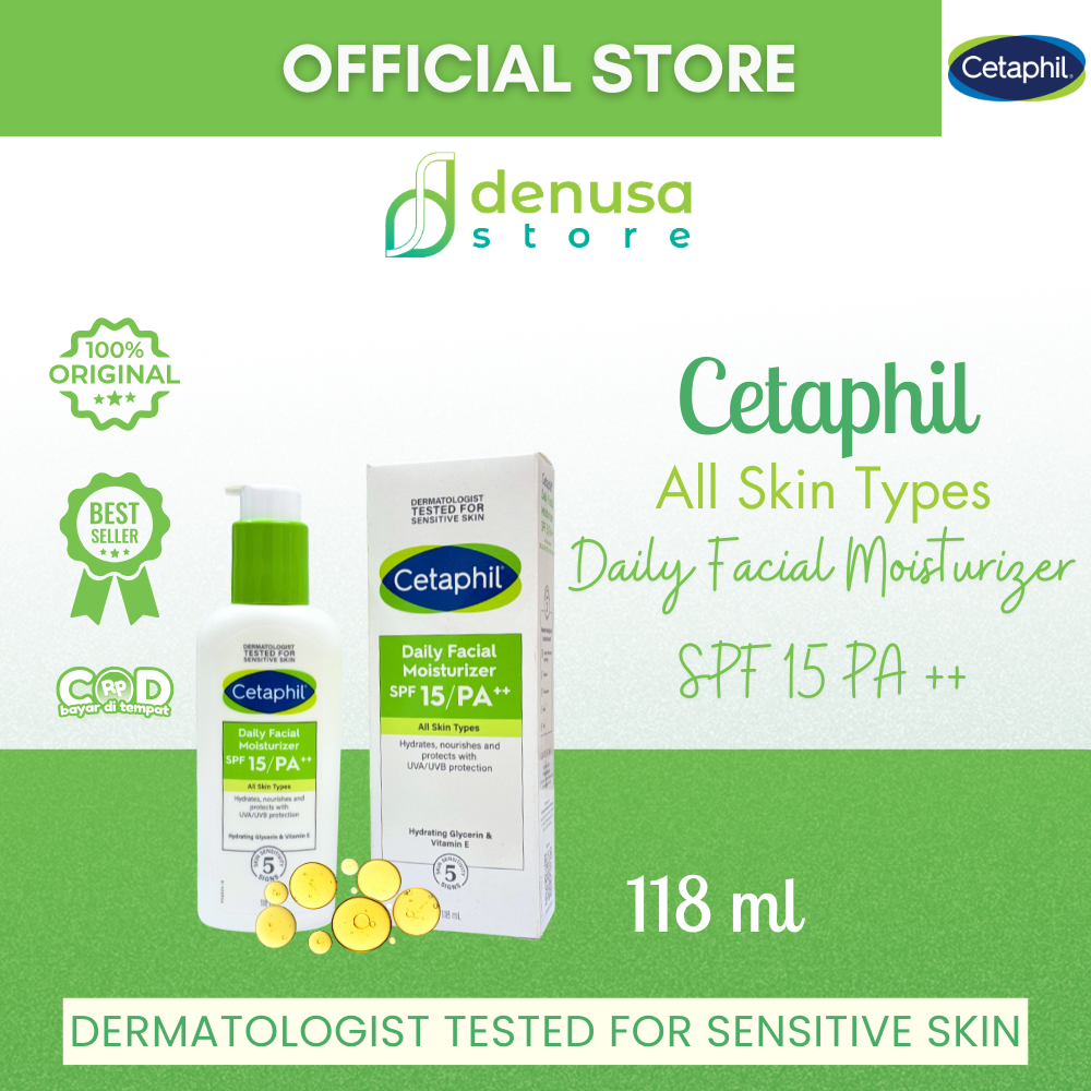 Beli CETAPHIL Daily Facial Moisturizer SPF 15 PA ++ All Skin Types 118 ml hanya di denusastore.com. Solusi praktis untuk menjaga kelembapan. Membantu melindungi kulit wajah dalam satu langkah perawatan.