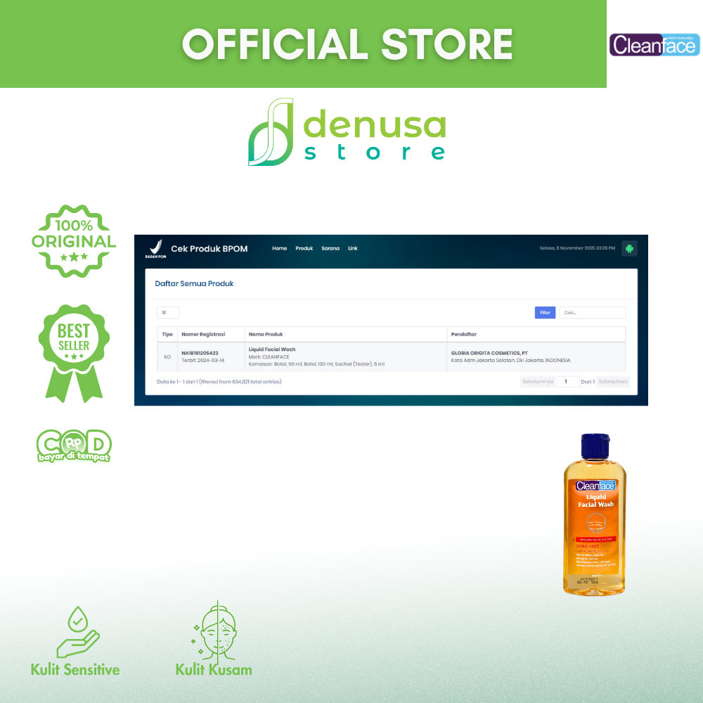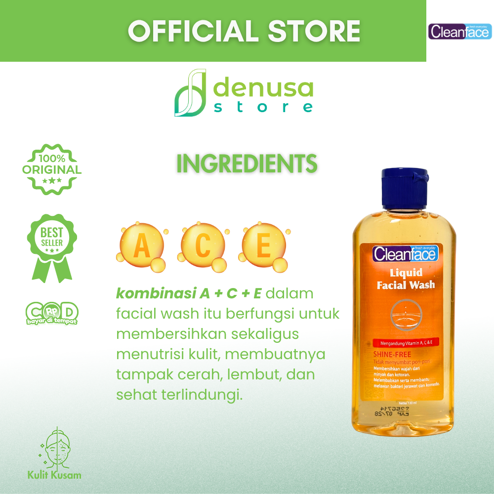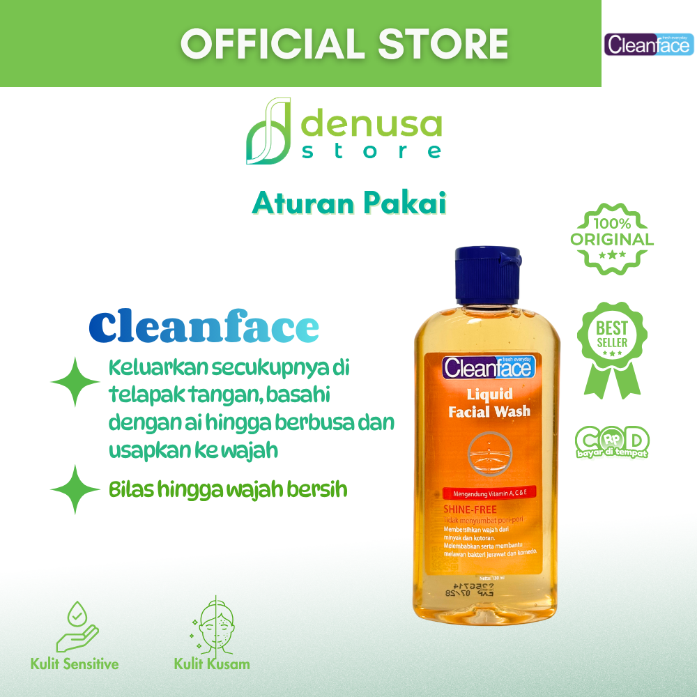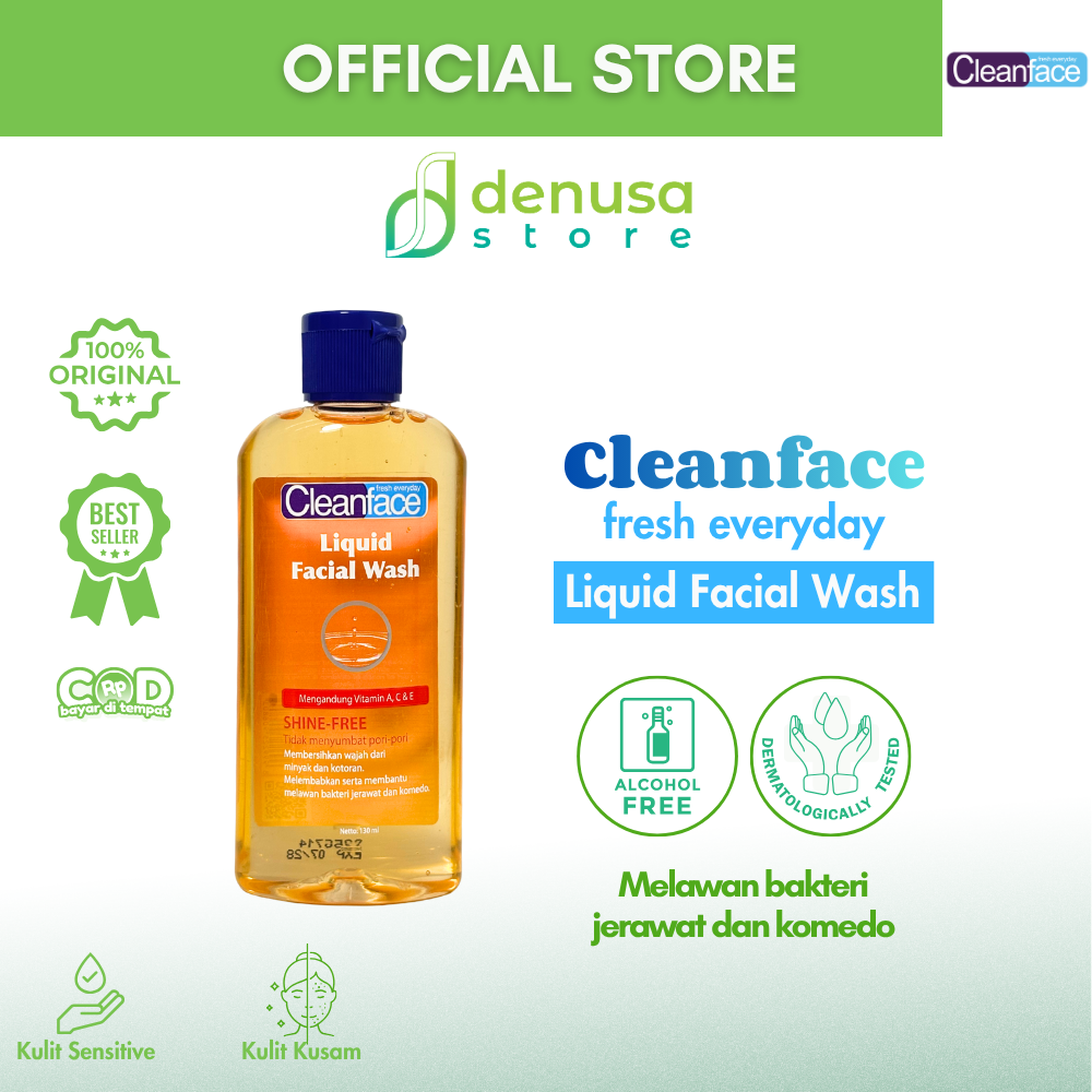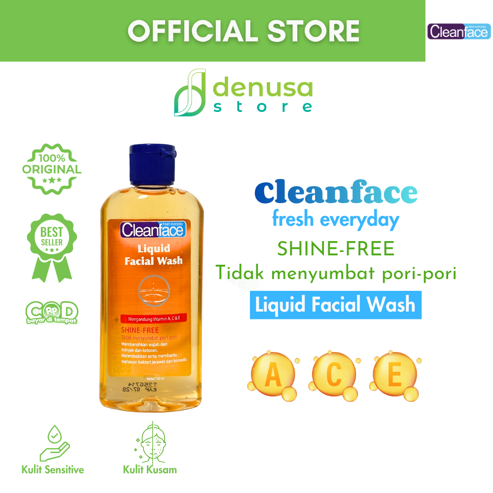 Beli CleanFace Liquid Facial Wash Shine Free 130 ml hanya di denusastore.com dan nikmati kulit yang bersih, segar. Dan bebas kilap sepanjang hari!