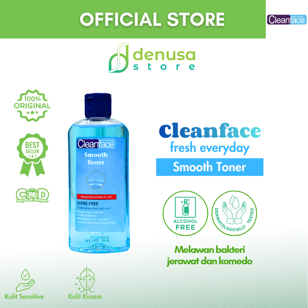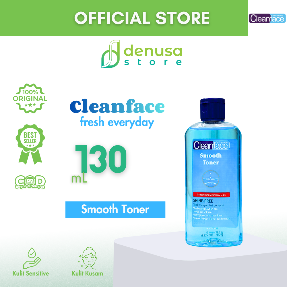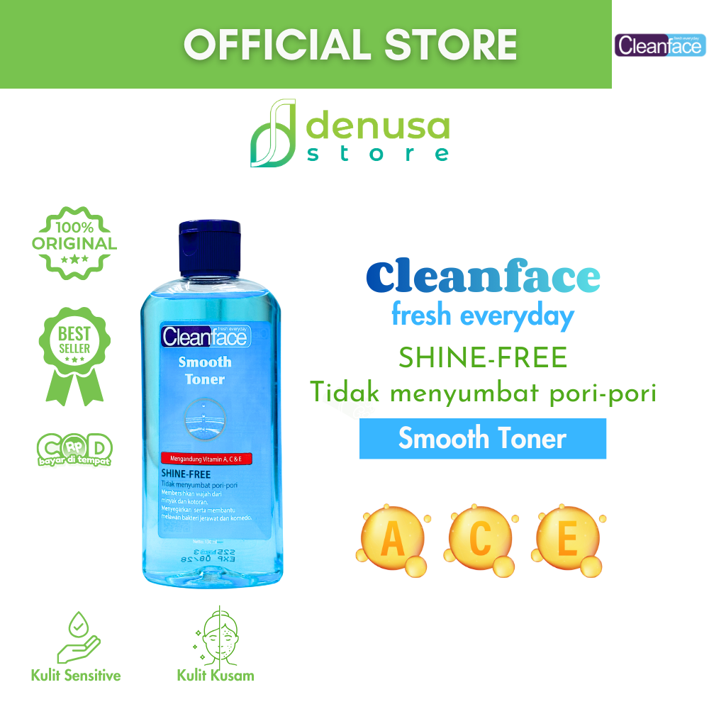 Beli CleanFace Smooth Toner Shine Free 130 ml hanya di denusastore.com dan rasakan kulit yang lebih segar, halus, dan bebas kilap sepanjang hari!
