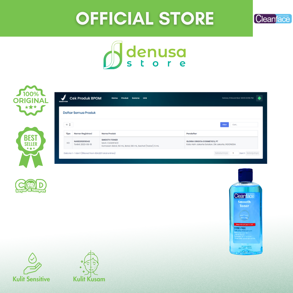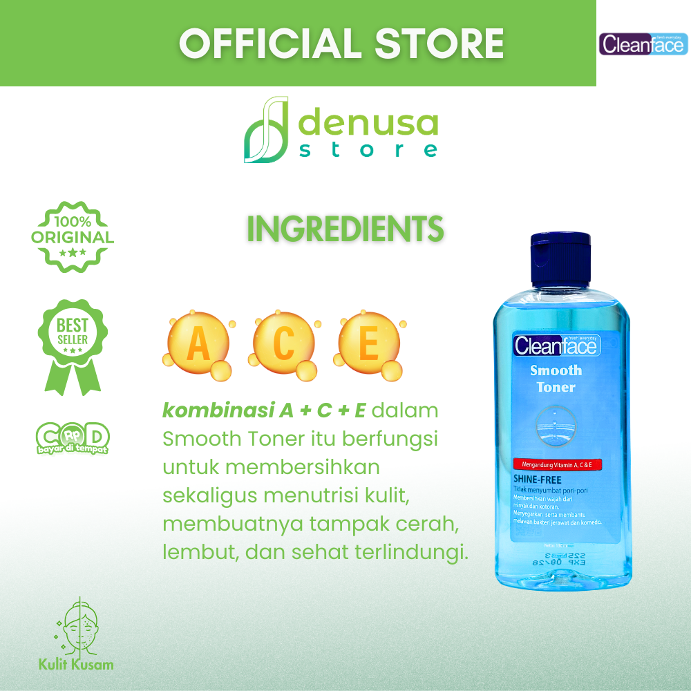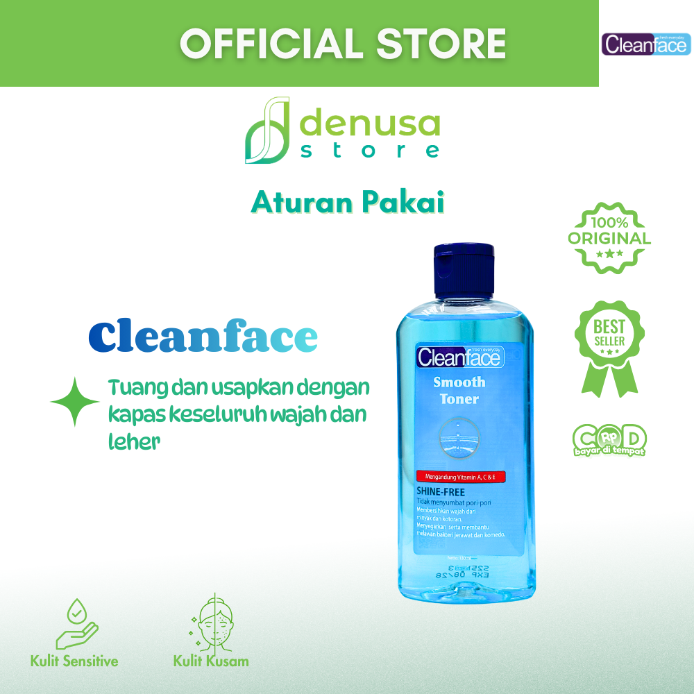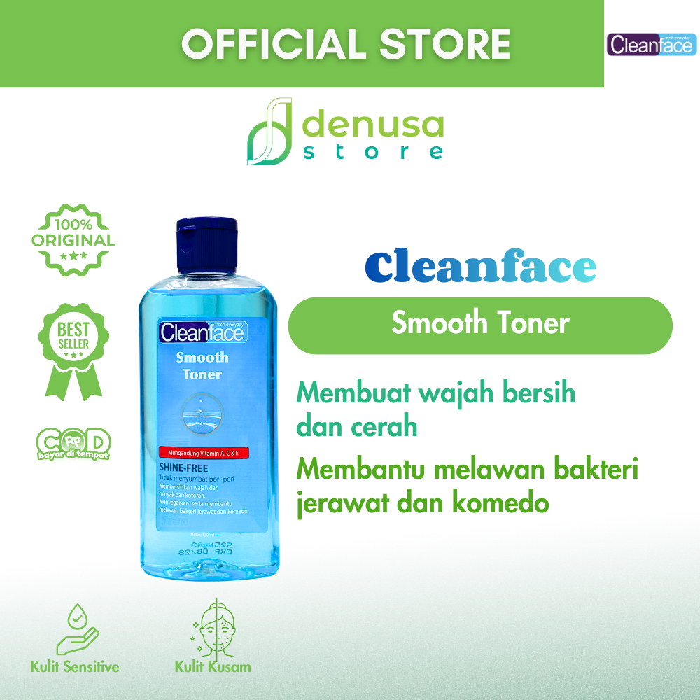 Beli CleanFace Smooth Toner Shine Free 130 ml hanya di denusastore.com dan rasakan kulit yang lebih segar, halus, dan bebas kilap sepanjang hari!