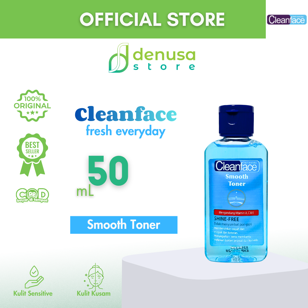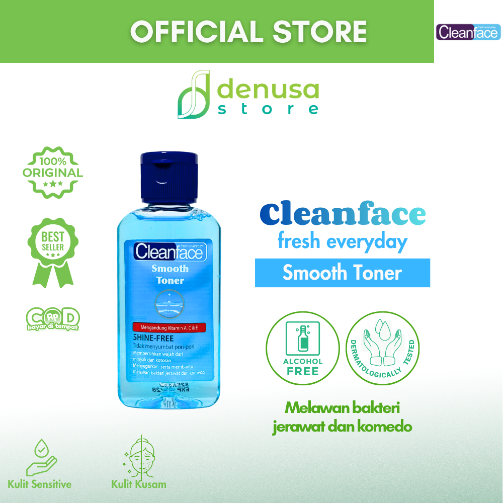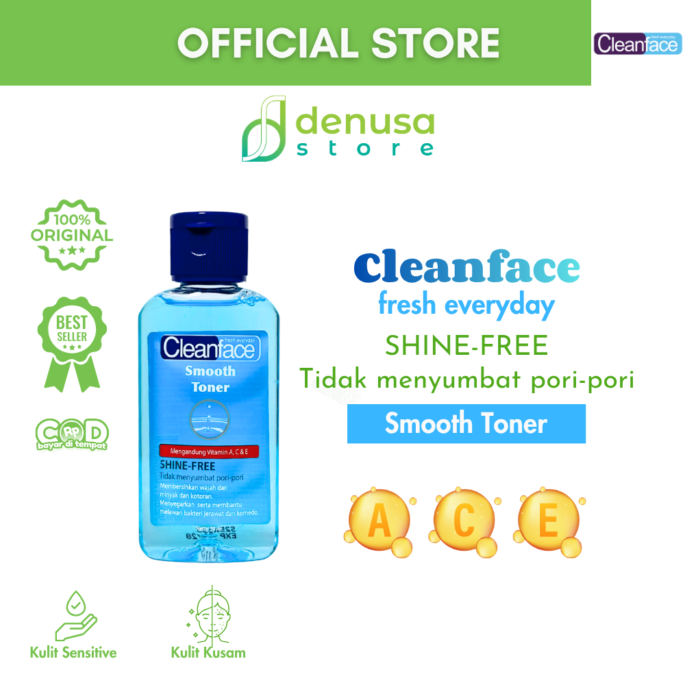 Beli CleanFace Smooth Toner Shine Free 50 ml hanya di denusastore.com dan rasakan kulit yang lebih segar, halus, dan bebas kilap sepanjang hari!