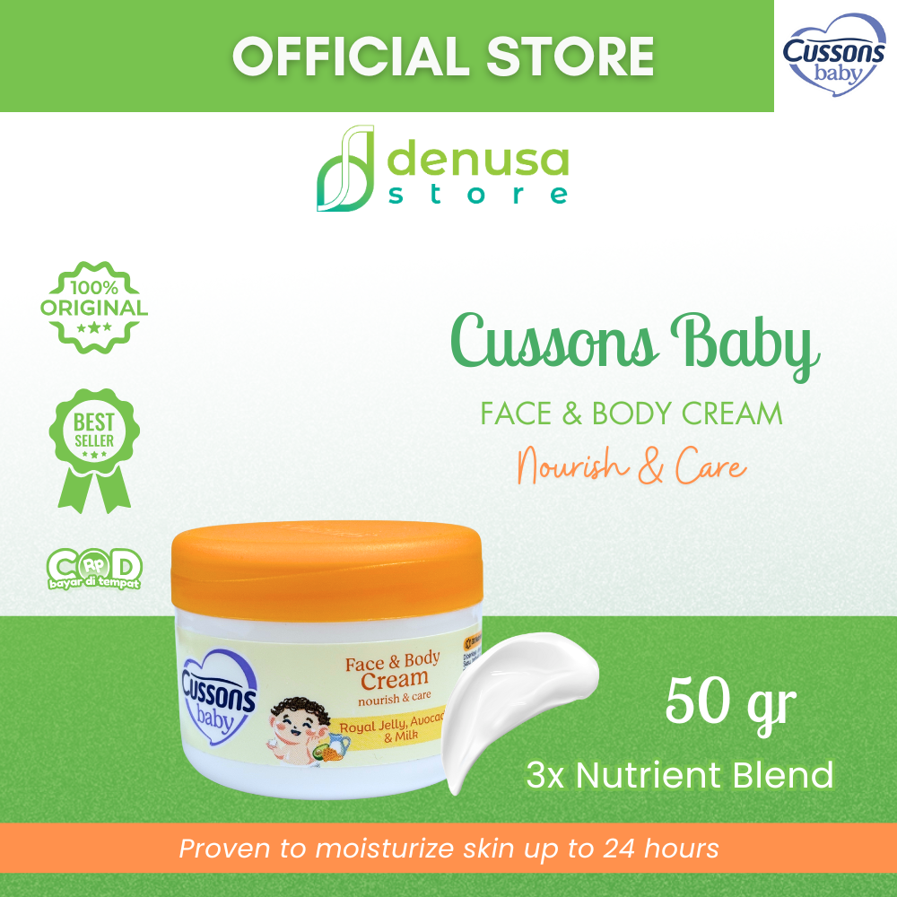 Beli CUSSONS BABY Face n Body Cream 50g hanya di denusastore.com. Jaga kelembapan kulit wajah dan tubuh bayi setiap hari. Dengan kelembutan alami dari Cussons Baby!