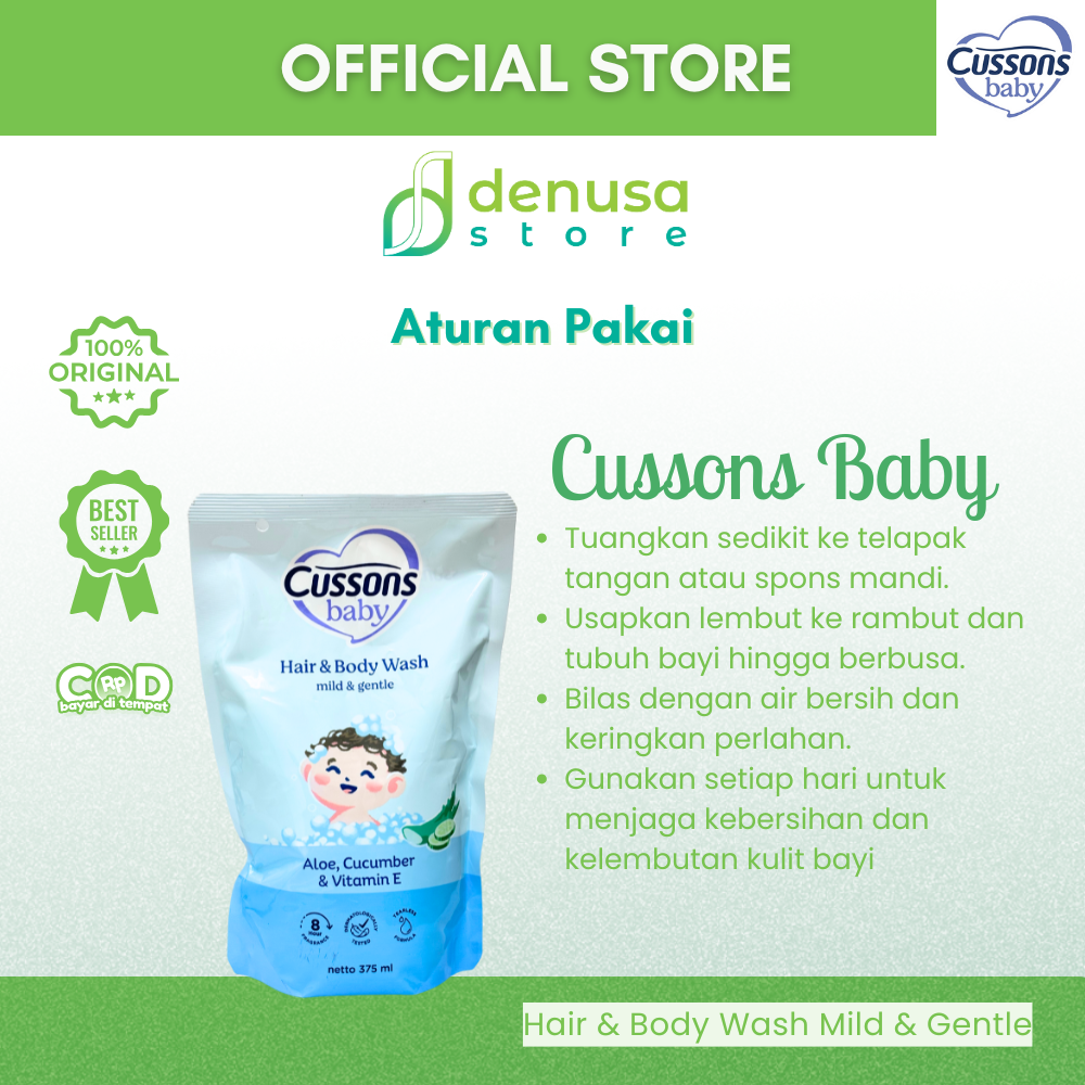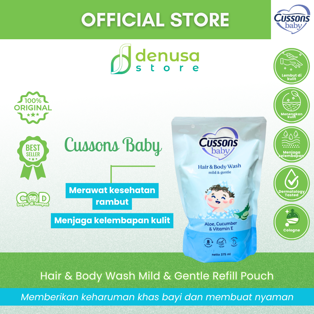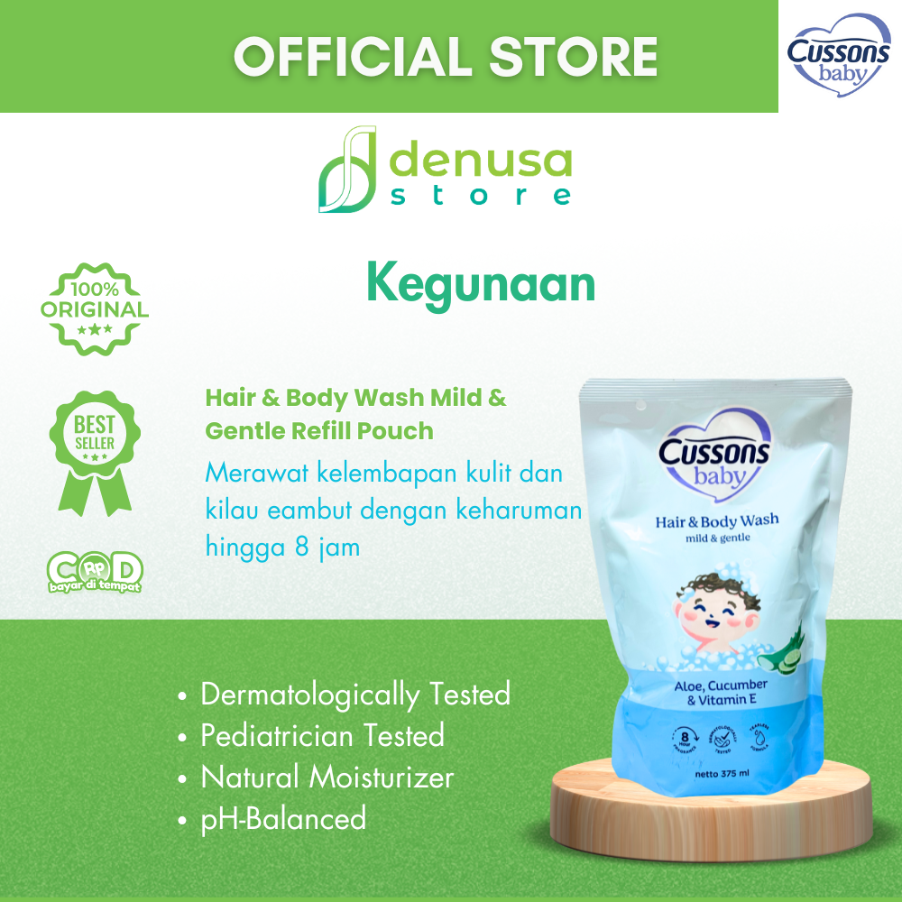 Beli CUSSONS BABY Hair n Body Wash Mild n Gentle Refill Pouch 375 ml hanya di denusastore.com. Rambut dan kulit bayi tetap lembut, halus. Serta wangi menenangkan setiap hari.