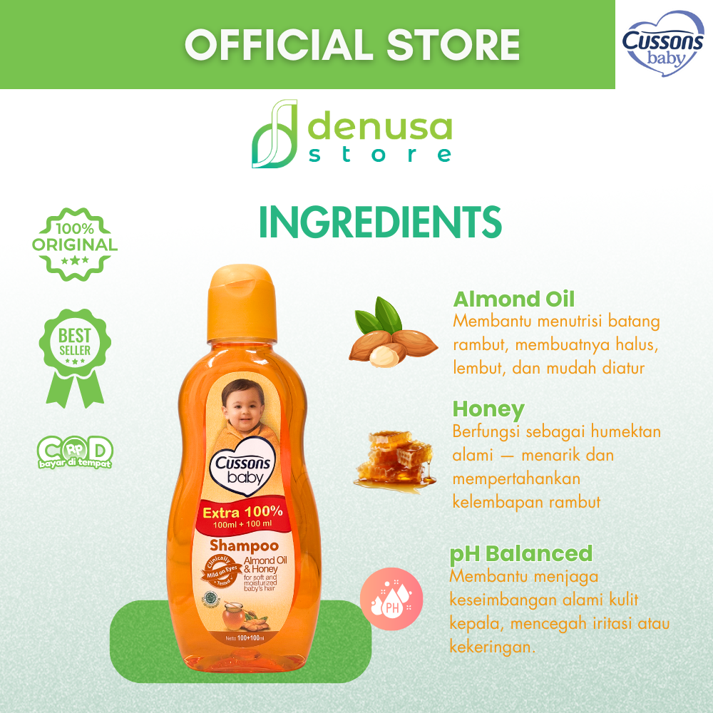 Beli CUSSONS BABY Shampoo Almond Oil n Honey 100+100ml hanya di denusastore.com. Rambut bayi tetap lembut, halus, dan wangi alami setiap hari.