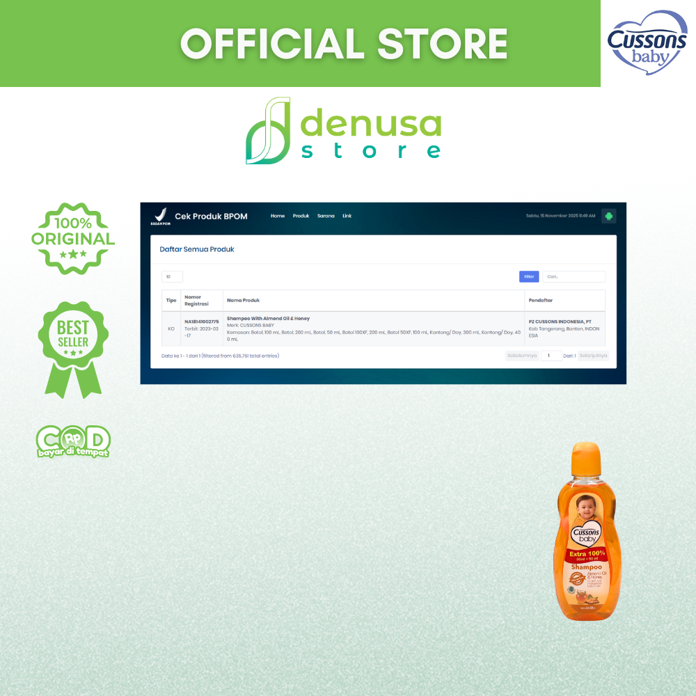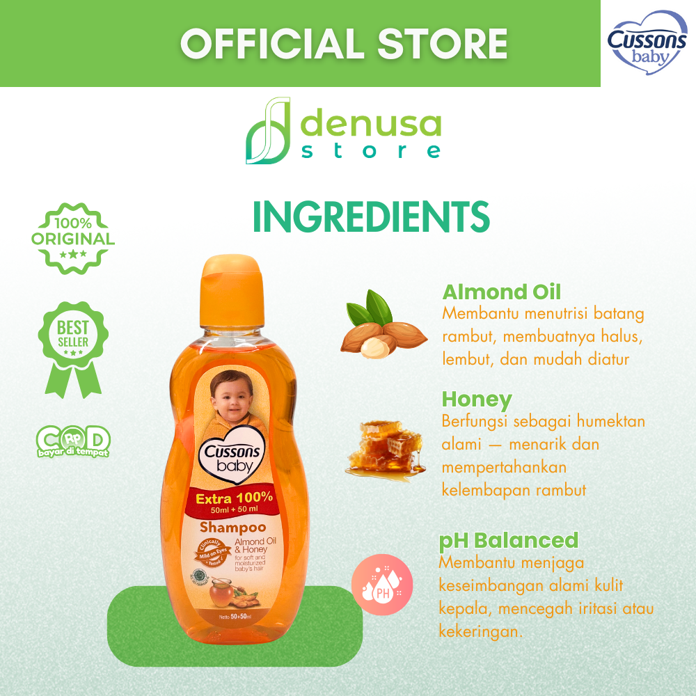 Beli CUSSONS BABY Shampoo Almond Oil & Honey 50+50ml hanya di denusastore.com. Rambut bayi tetap lembut, halus, dan wangi alami setiap hari.