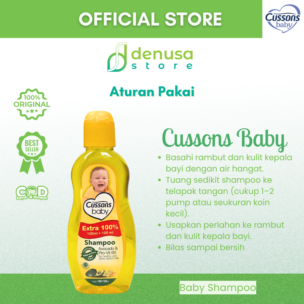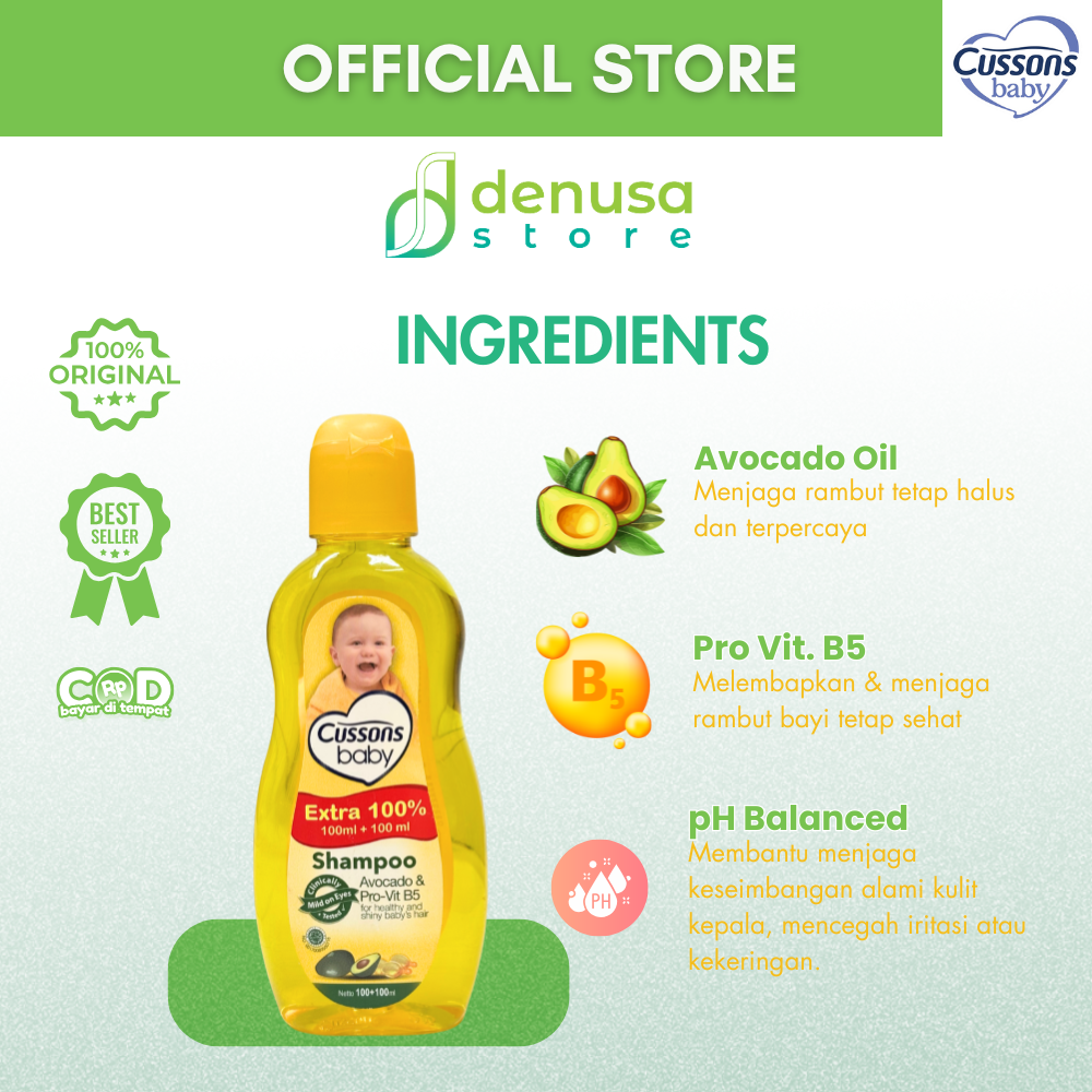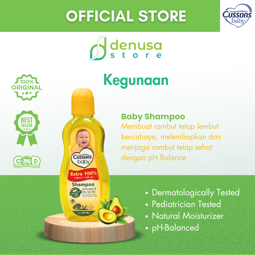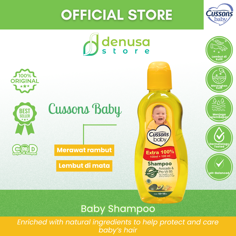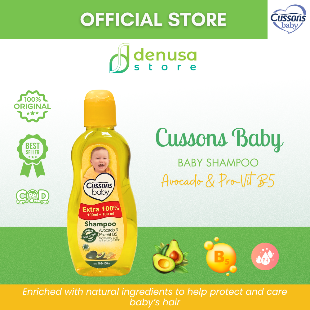 Beli CUSSONS BABY Shampoo Avocado n Pro-Vit B5 100+100ml hanya di denusastore.com. Rambut bayi tetap lembut, halus, dan sehat setiap hari.