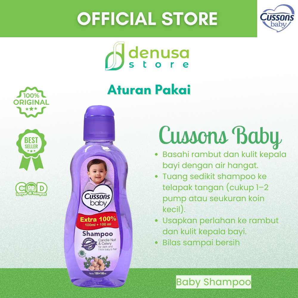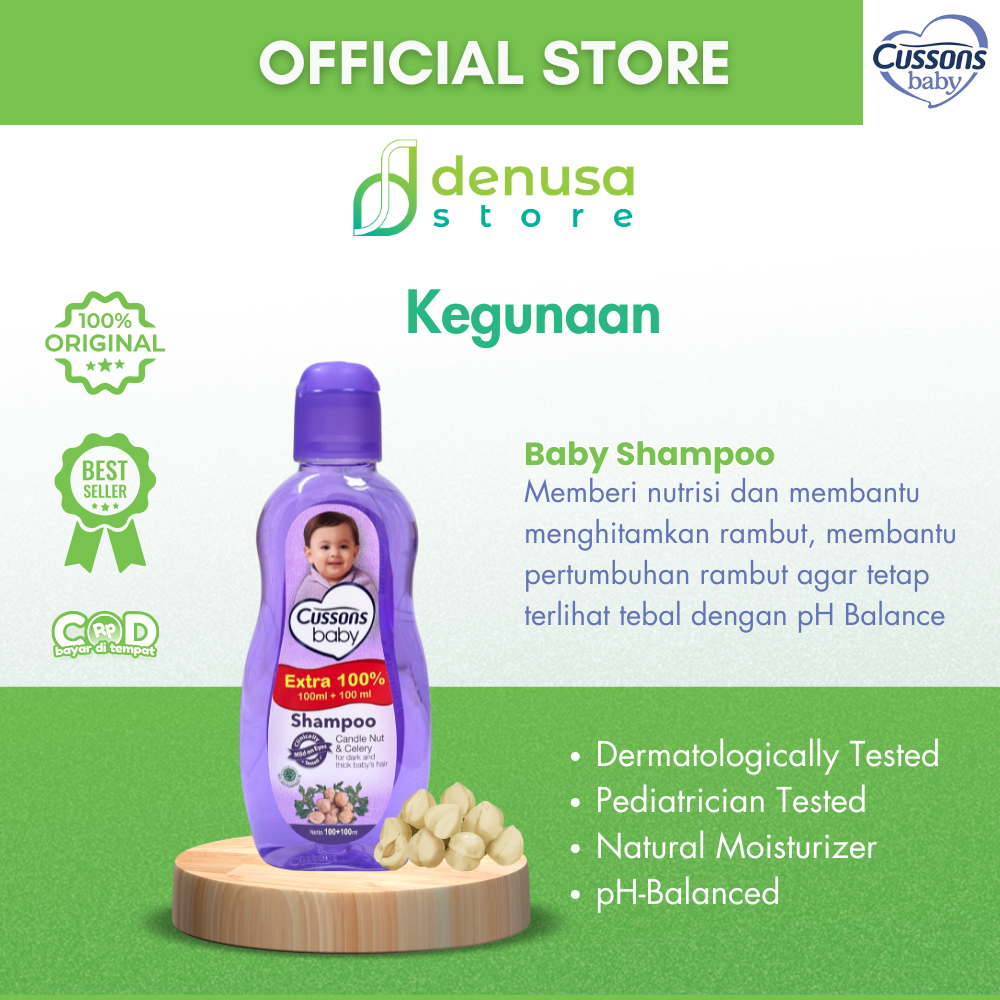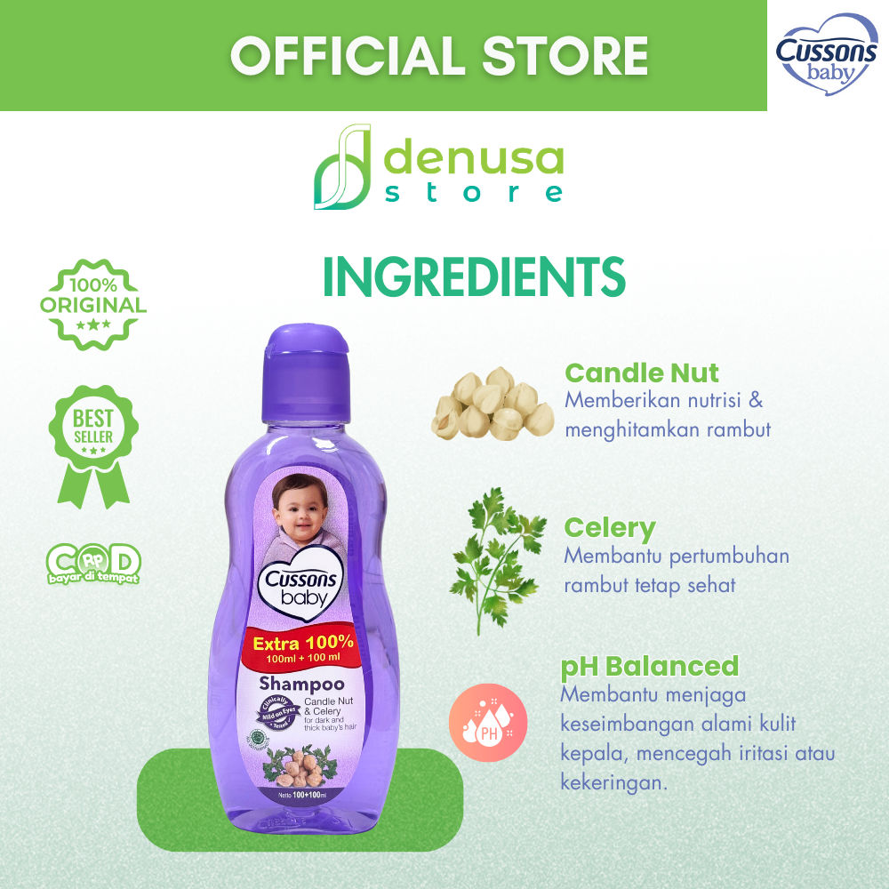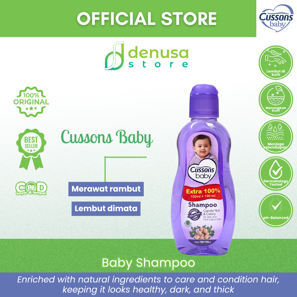 Beli CUSSONS BABY Shampoo Candle Nut & Celery 100+100ml hanya di denusastore.com. Rambut bayi tetap lembut, halus, dan sehat setiap hari.