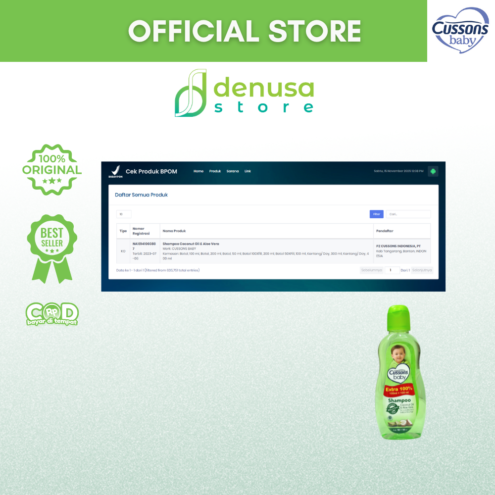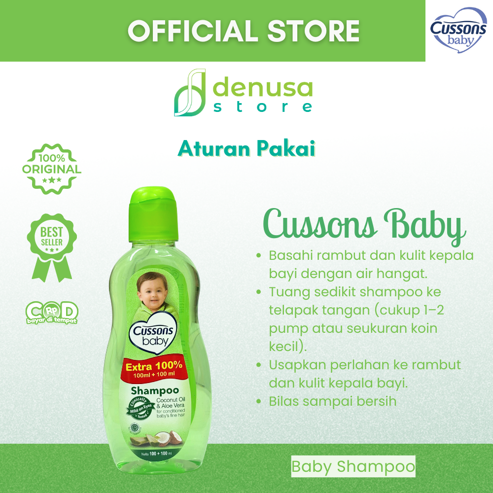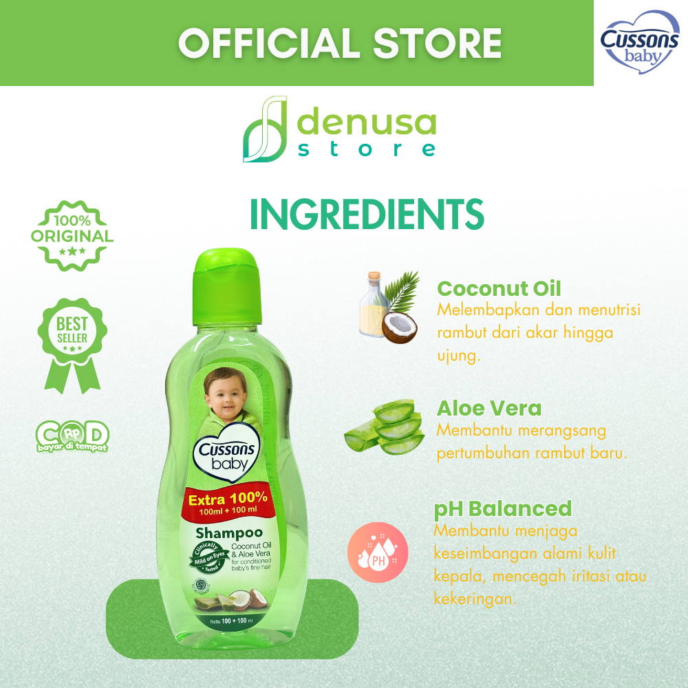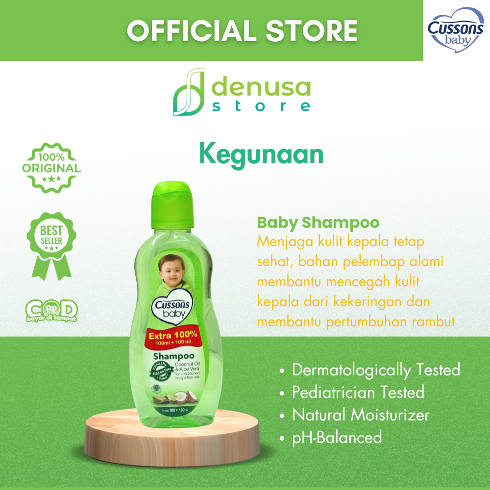 Beli CUSSONS BABY Shampoo Coconut Oil & Aloe Vera 100+100ml hanya di denusastore.com. Rambut bayi tetap lembut, halus, dan sehat setiap hari.