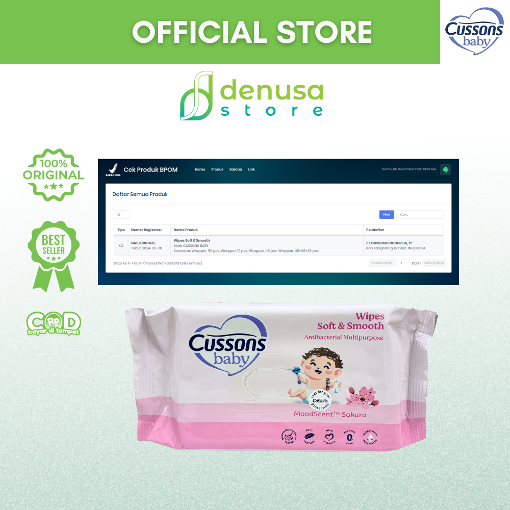 Beli CUSSONS BABY Wipes Soft n Smooth Antibacterial Multipurpose 45 Sheets hanya di denusastore.com. Jaga kulit si kecil tetap bersih, lembut, dan terlindungi!