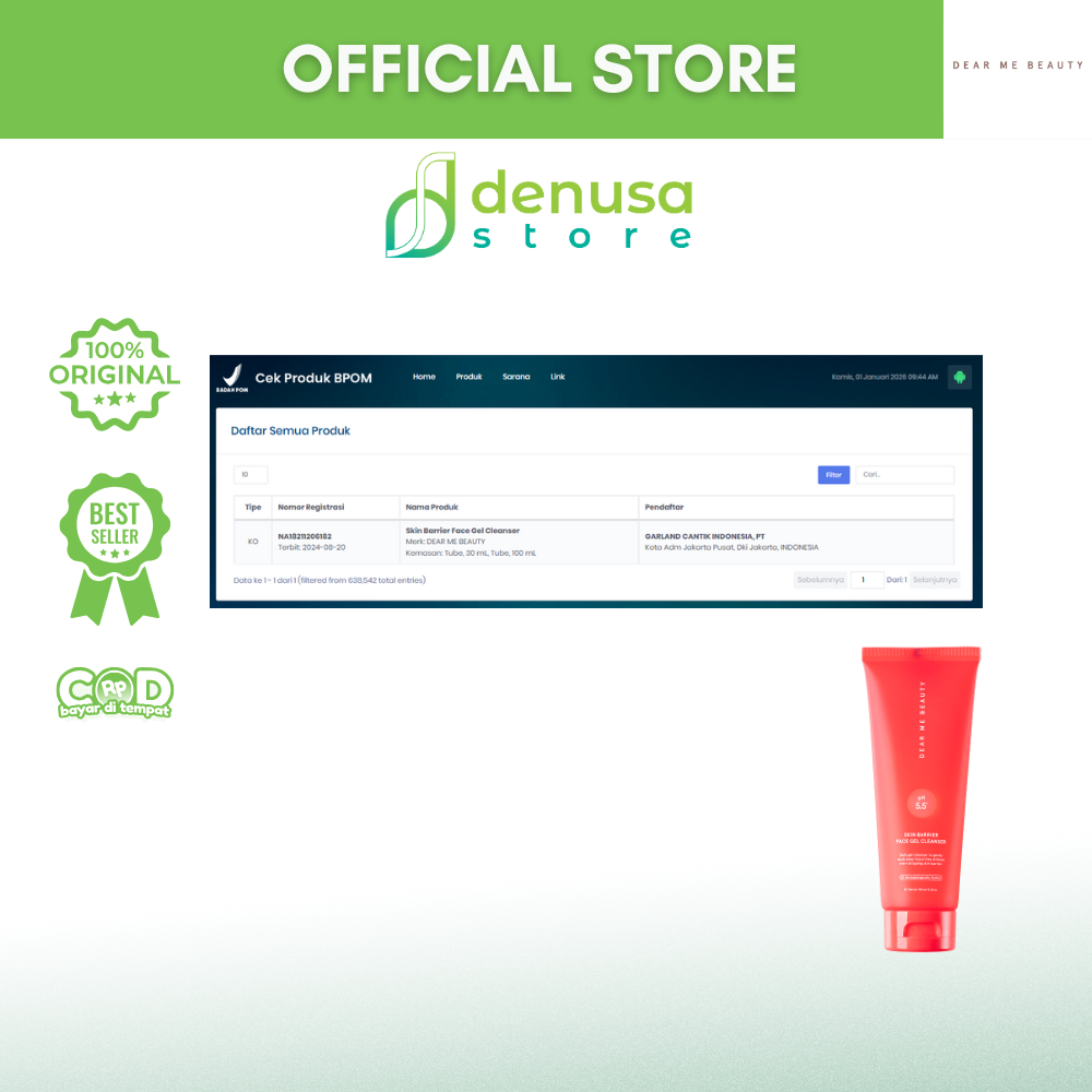 Beli DEAR ME BEAUTY Skin Barrier Face Gel Cleanser pH 5.5 100 ml hanya di denusastore.com. Solusi praktis untuk kulit bersih, segar, dan terlindungi setiap hari!