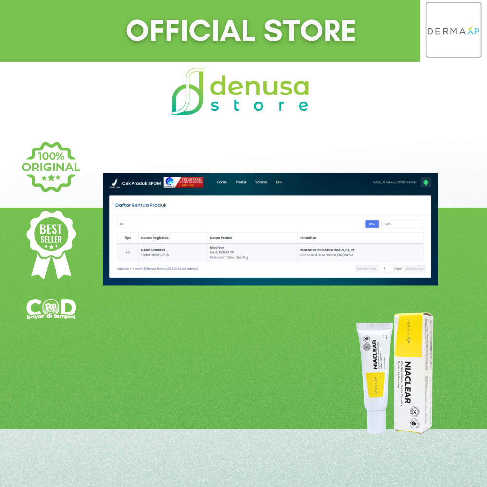 Beli DERMA XP Niacler 15 g hanya di denusastore.com. Solusi praktis untuk membantu merawat kulit berjerawat agar tetap bersih, sehat, dan terawat setiap hari.