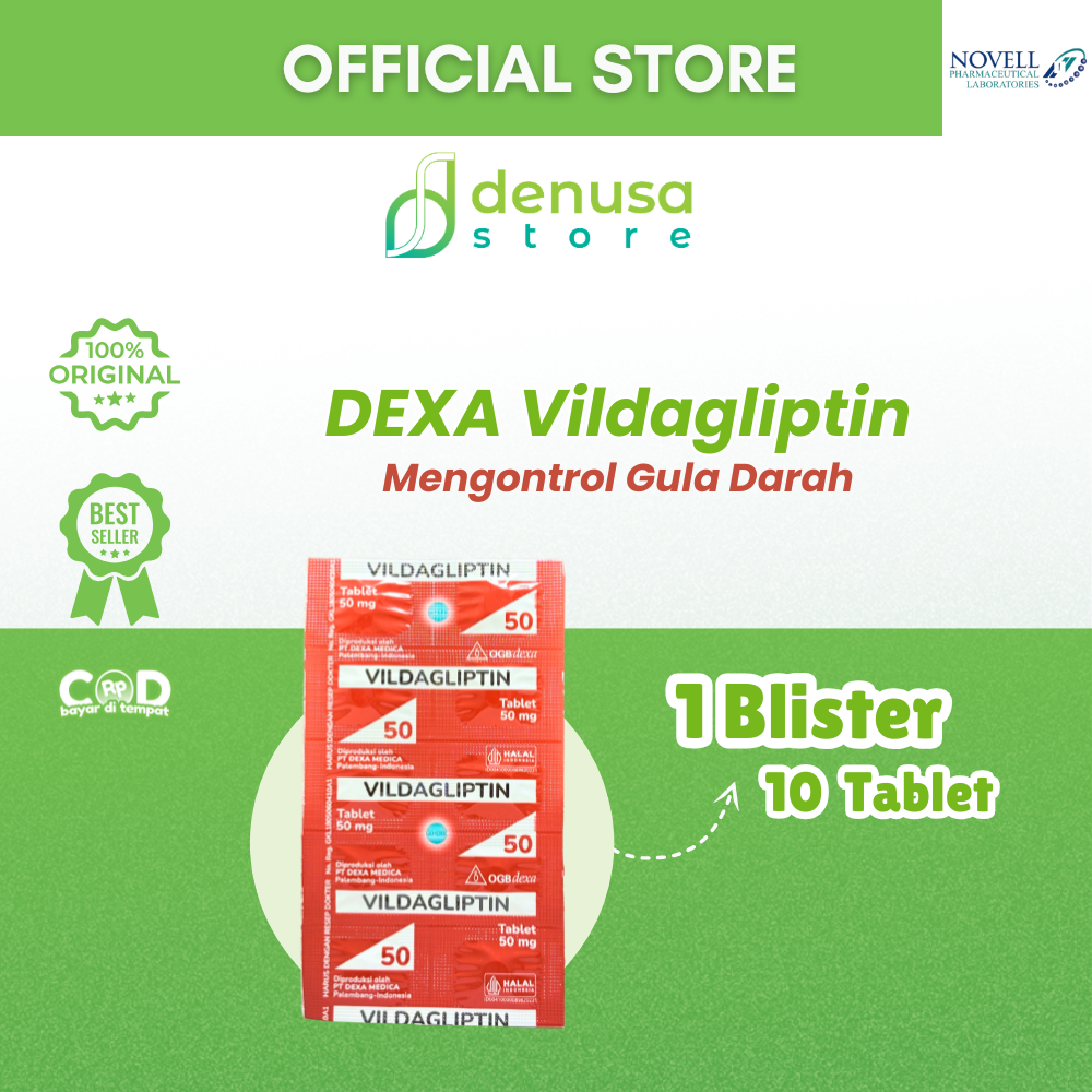 Beli DEXA Vildagliptin 1 Strip 10 Tablets hanya di denusastore.com. Pastikan pengelolaan gula darah tetap optimal dengan obat yang terpercaya dan terstandarisasi.