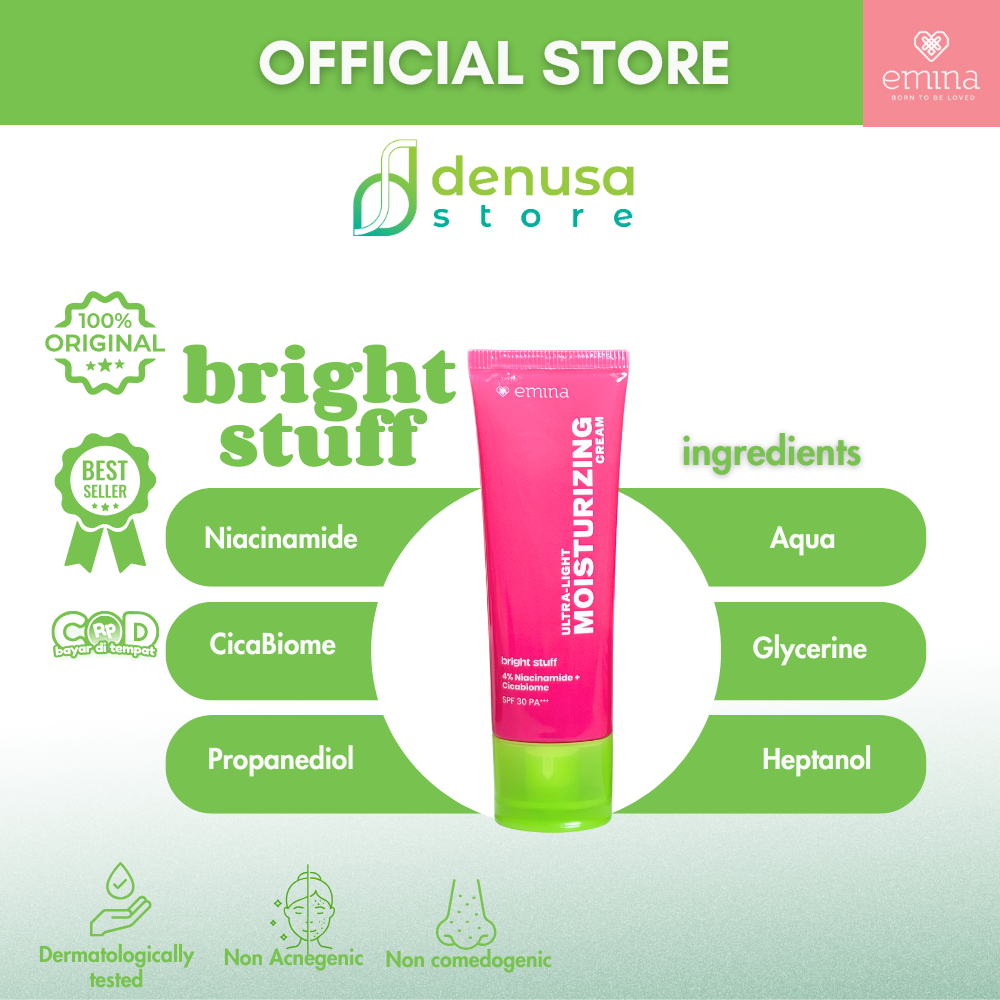 Beli EMINA Bright Stuff Moisturizing Cream Am GlowUp SPF 15 PA+++ 20 ml hanya di denusastore.com. Wujudkan kulit cerah alami sambil terlindungi. Dan terlindungi dari sinar UV.
