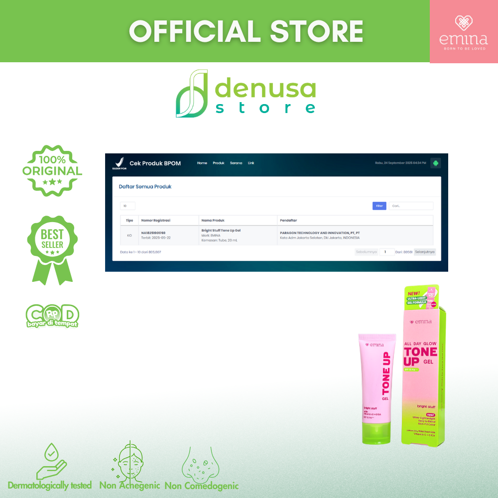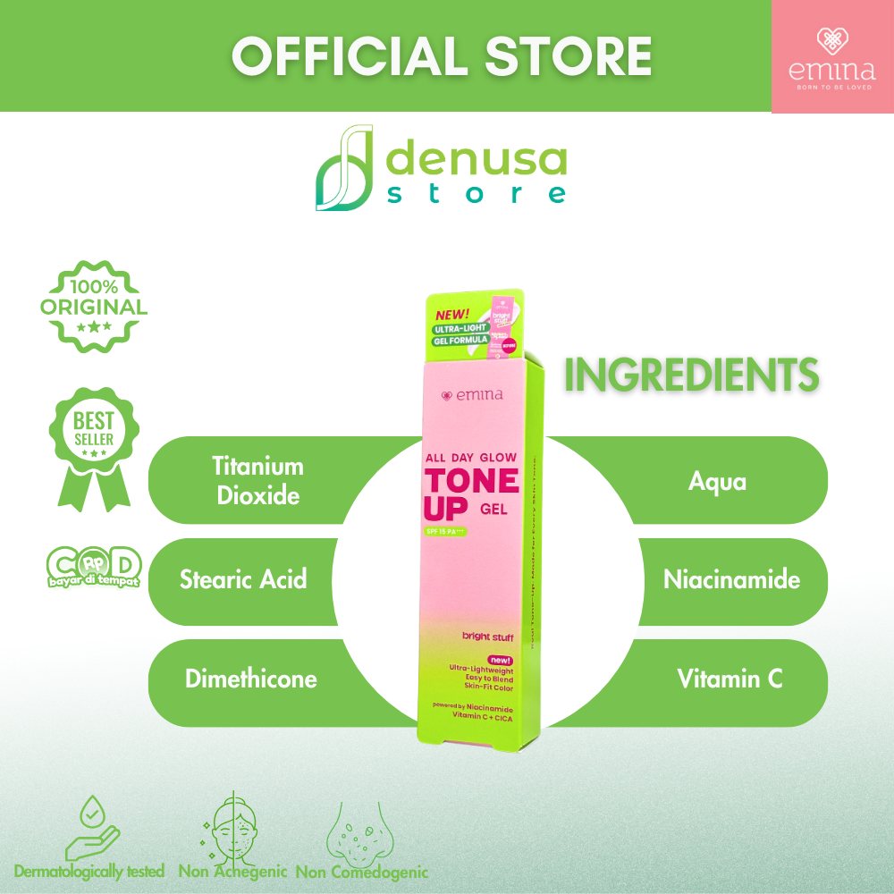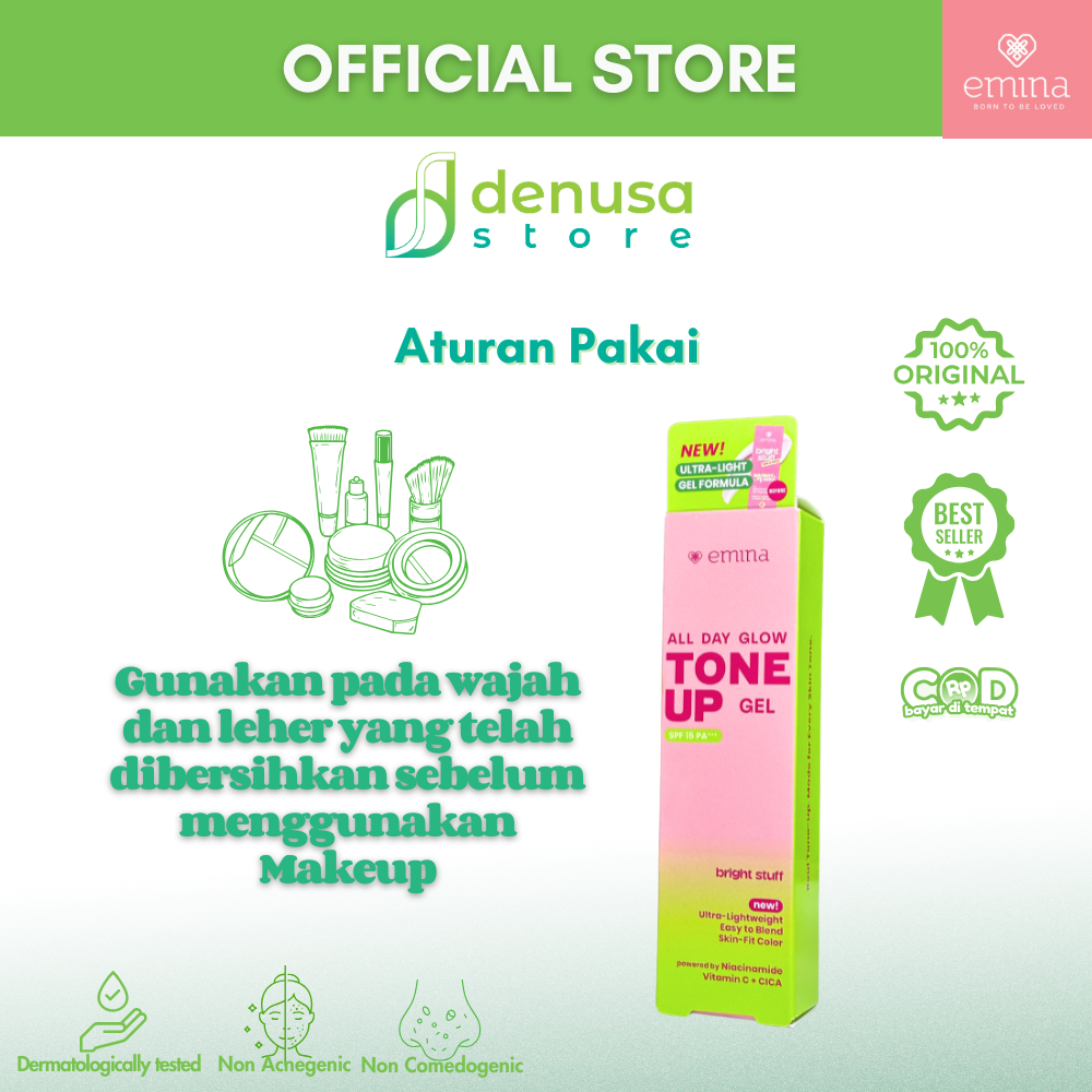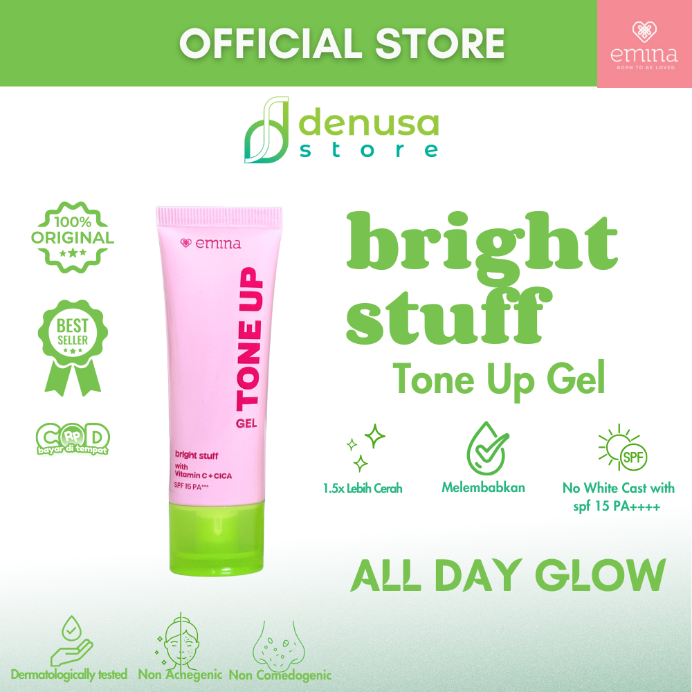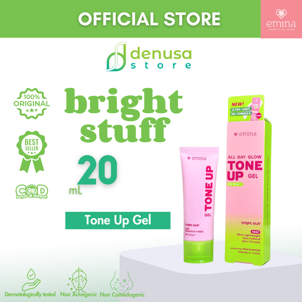 Beli EMINA Bright Stuff All Day Glow Tone Up Gel SPF 15 PA+++ 20ml hanya di denusastore.com. Wujudkan tampilan cerah, halus, dan terlindungi dari sinar UV ringan!