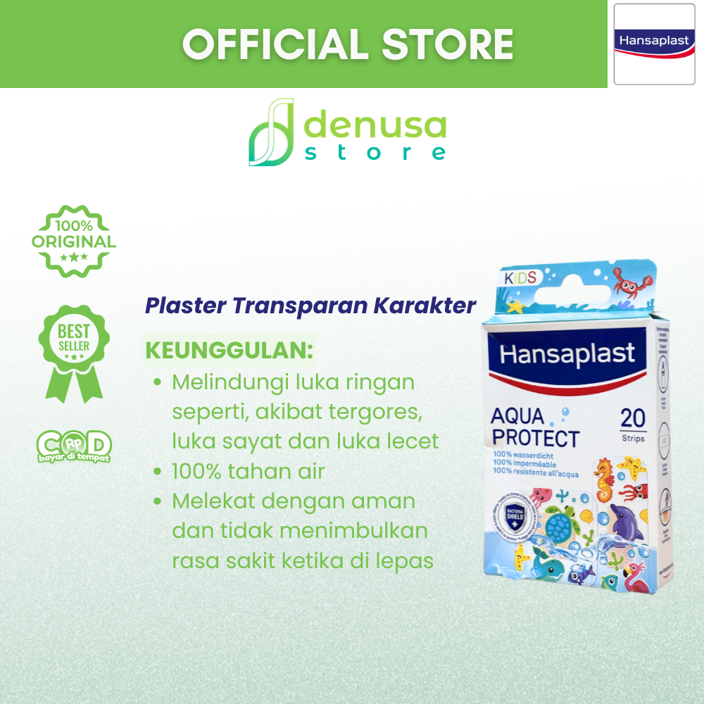 Beli HANSAPLAST Aqua Protect Kids 20 Strips hanya di denusastore.com. Solusi perlindungan luka praktis untuk anak.