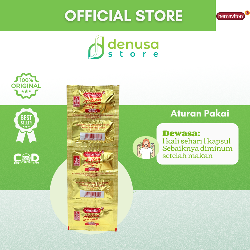 Beli HEMAVITON Action Imun Up 1 Strip 5 Kapsul hanya di denusastore.com. Solusi praktis untuk tubuh tetap fit dan terlindungi setiap hari!