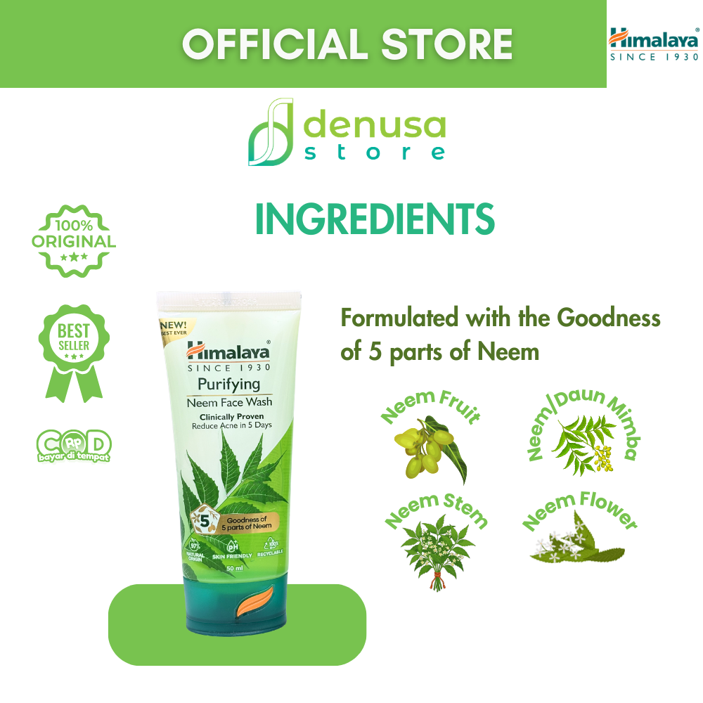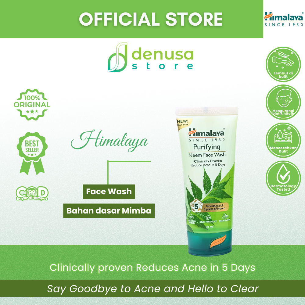 HIMALAYA Purifying Neem Face Wash 50 ml adalah pembersih wajah dengan kandungan Neem. Membantu membersihkan kotoran, minyak berlebih, dan sisa makeup dari wajah secara menyeluruh. Diformulasikan untuk membantu menjaga kebersihan kulit serta merawat kulit yang rentan berjerawat. Sehingga kulit terasa lebih segar, bersih, dan tampak sehat.