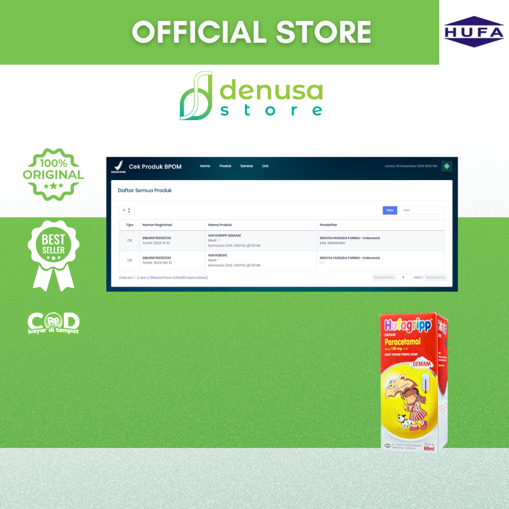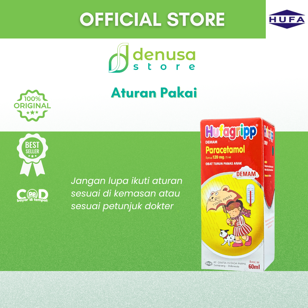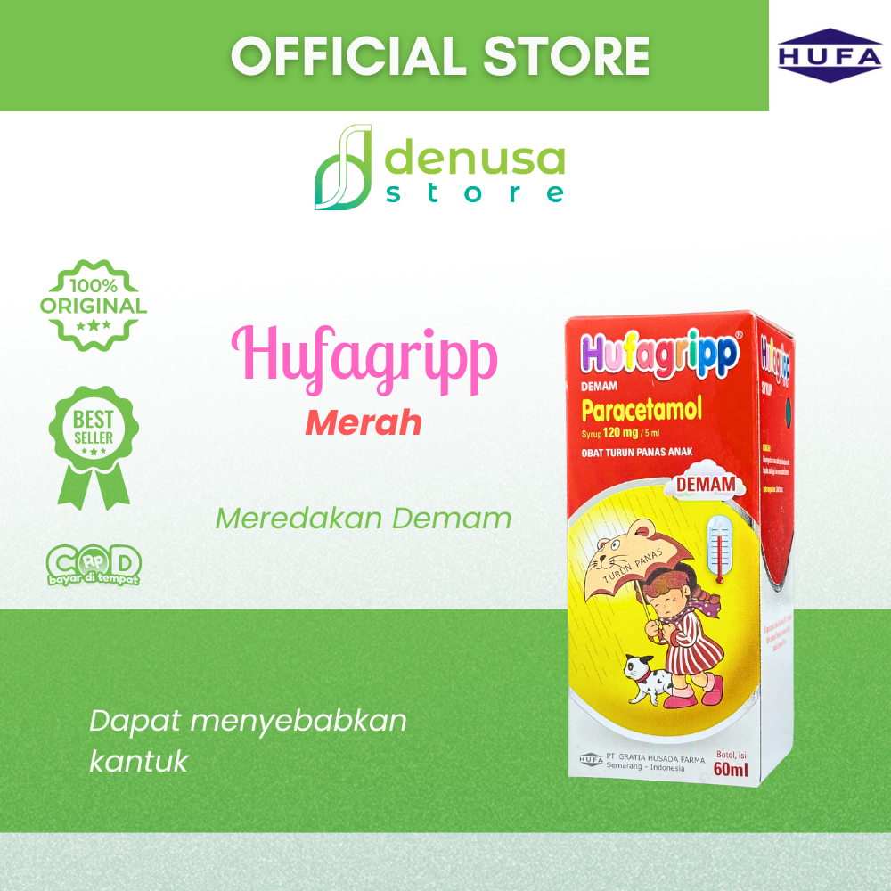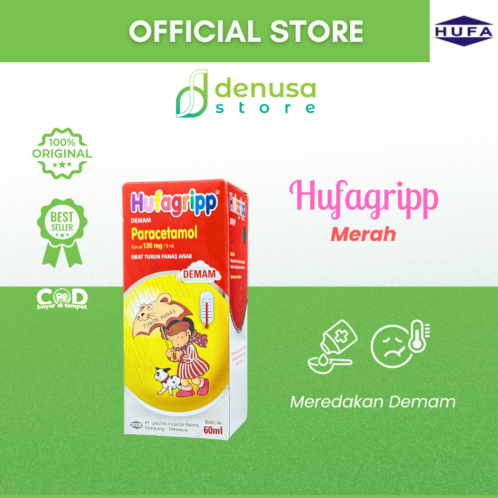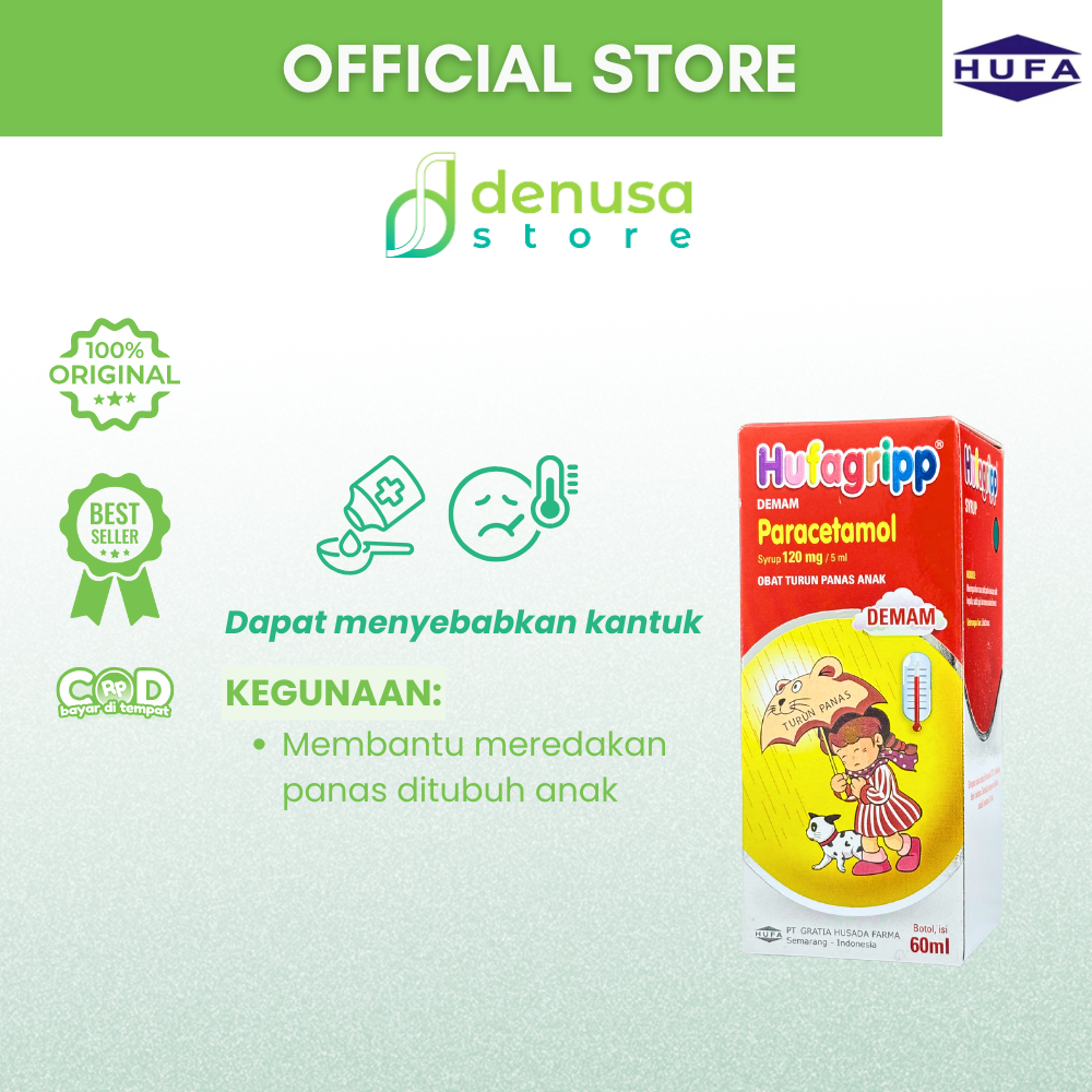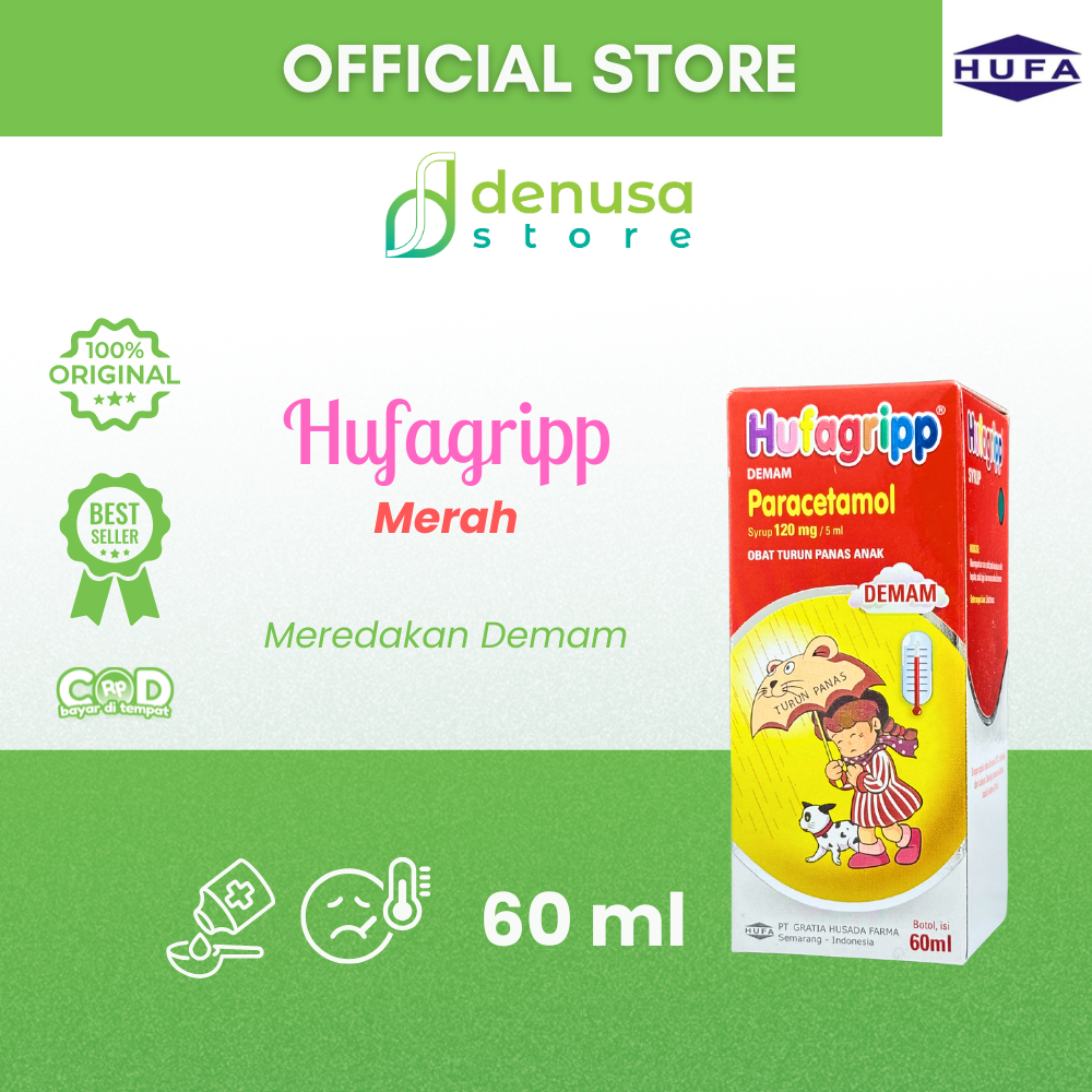 Beli HUFAGRIPP Demam Obat Turun Panas Anak 60ml hanya di denusastore.com. Sirup praktis untuk membantu menurunkan demam anak dengan nyaman!