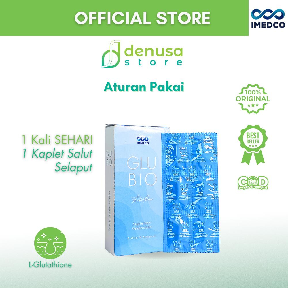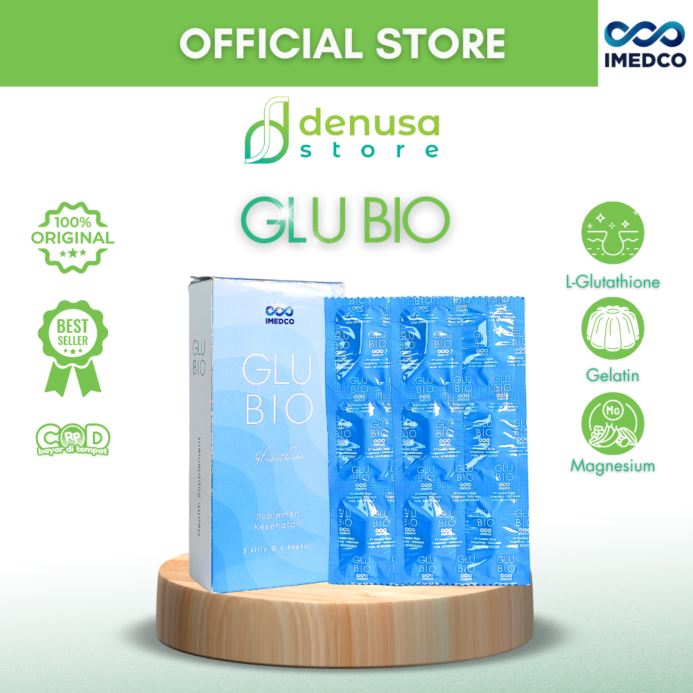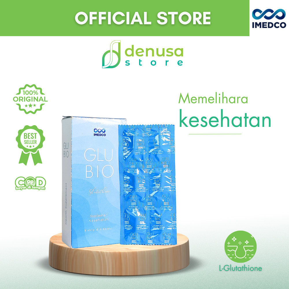Beli IMEDCO Glubio Glutathione Suplemen Kesehatan 1 Kotak 30 Kapsul di denusastore.com dan dapatkan manfaatnya.