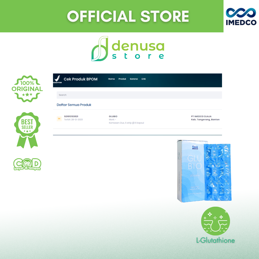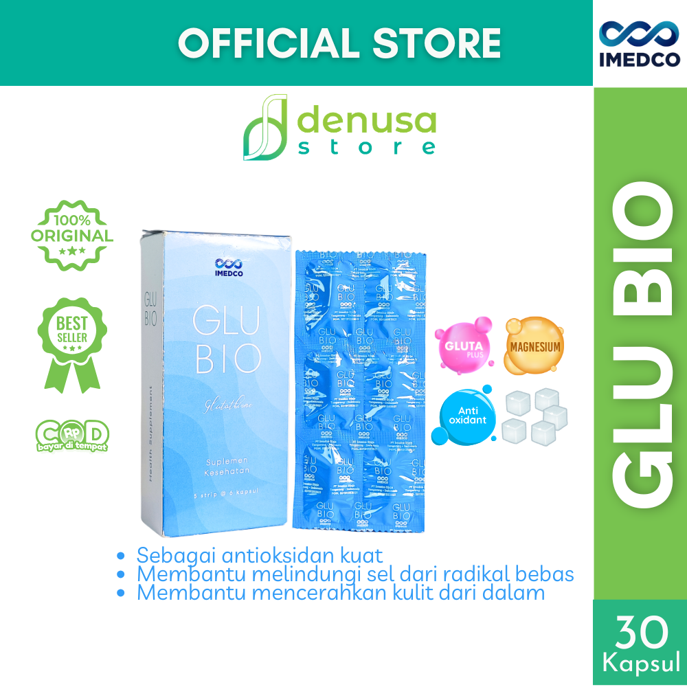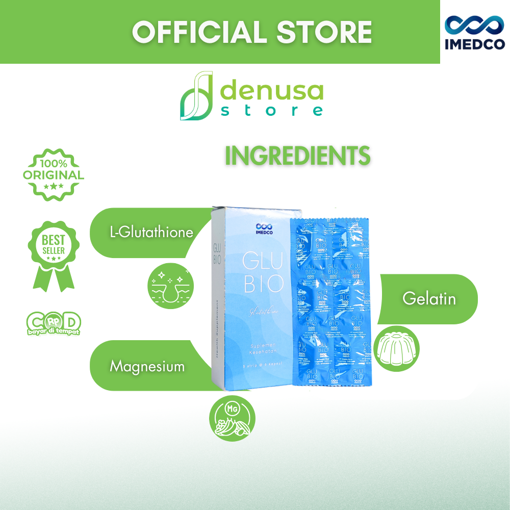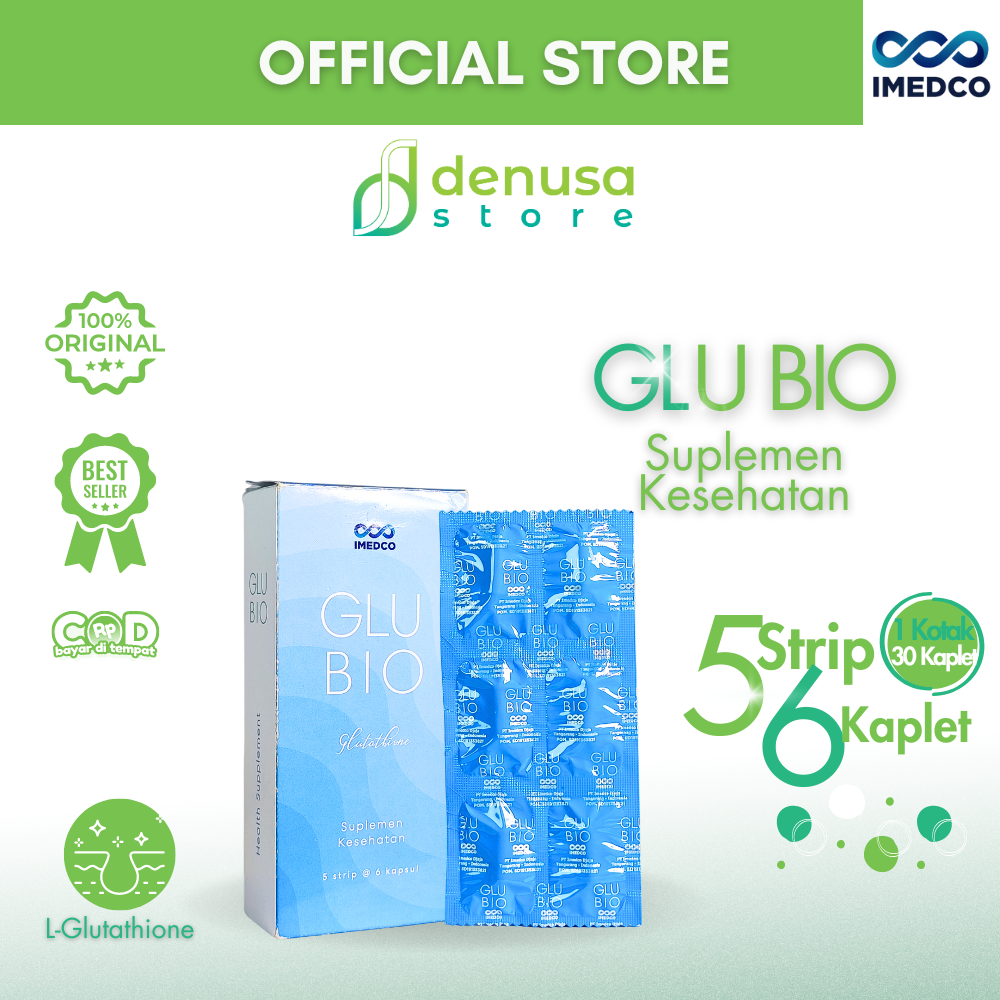 Beli IMEDCO Glubio Glutathione Suplemen Kesehatan 1 Kotak 30 Kapsul di denusastore.com dan dapatkan manfaatnya.
