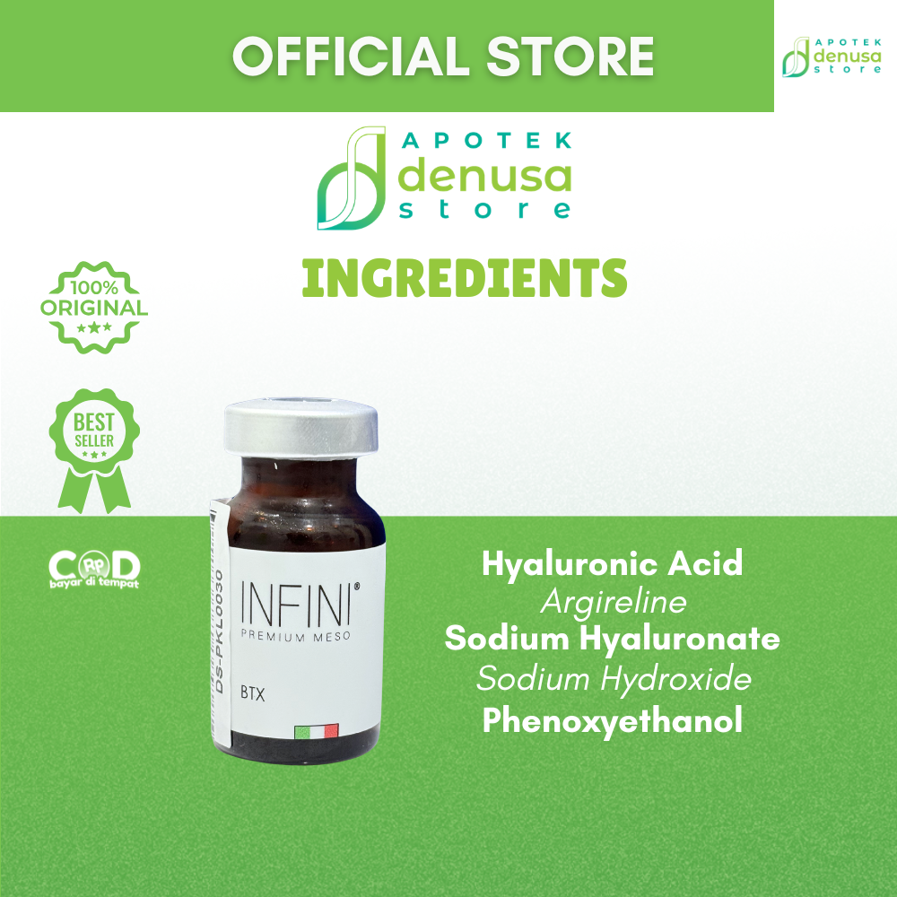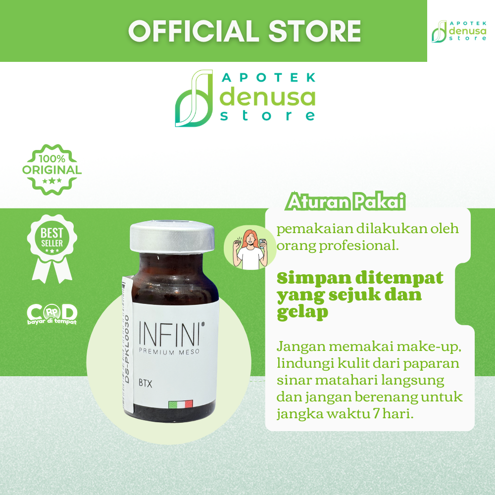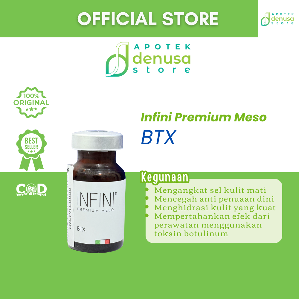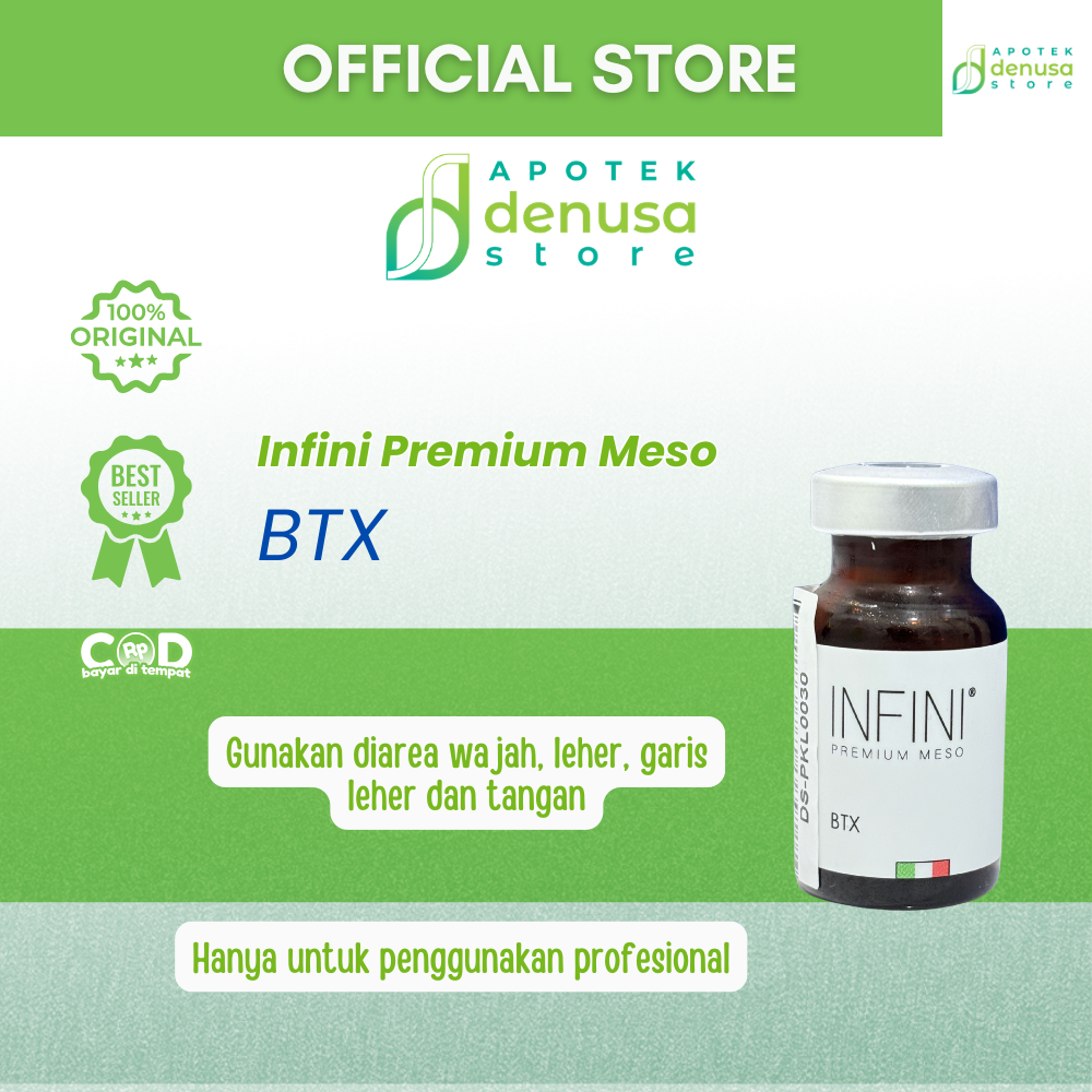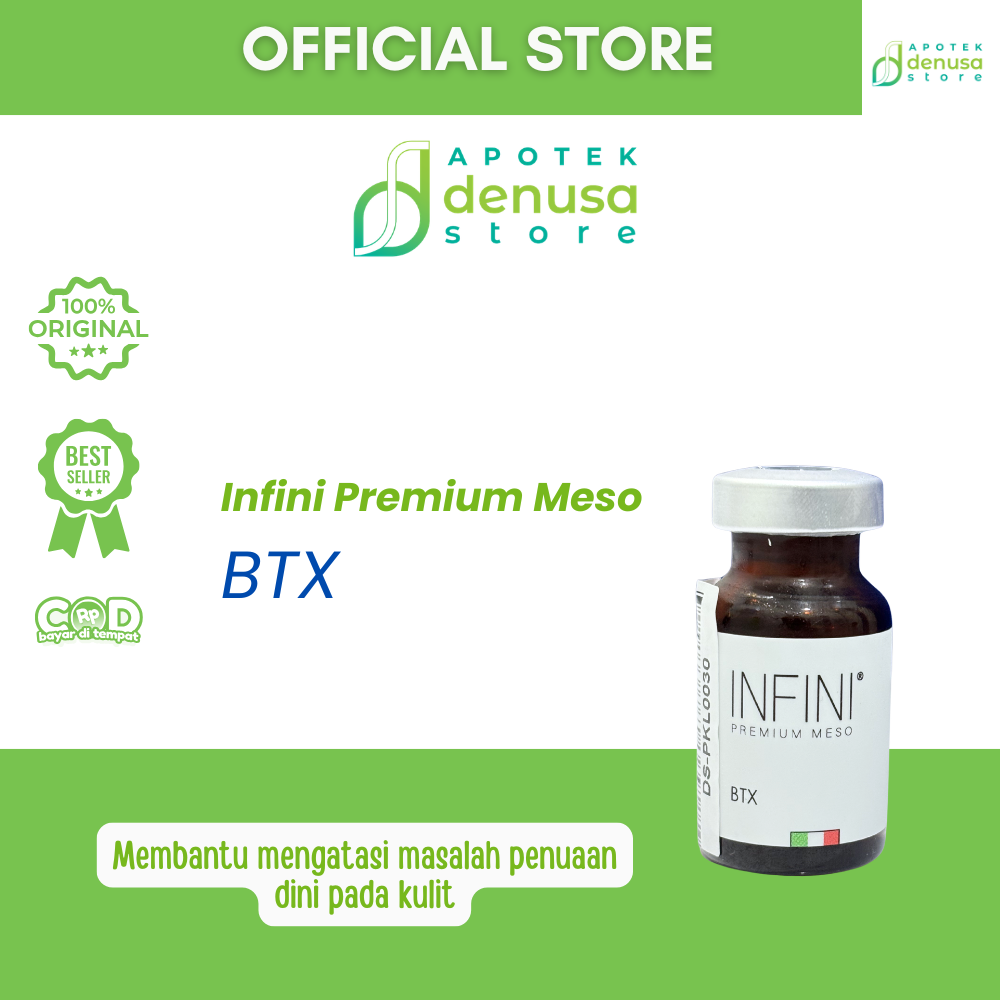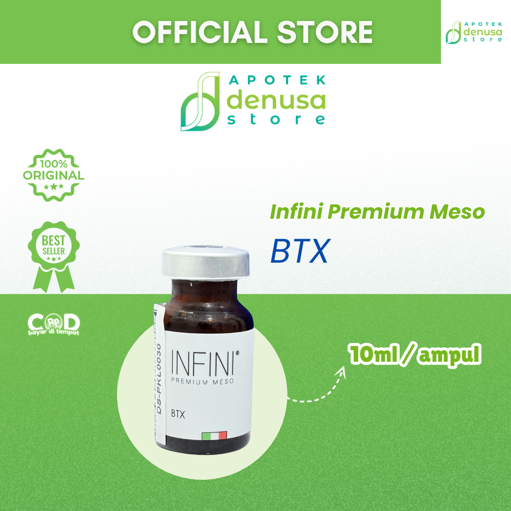 Beli Infini Premium Meso BTX 1 Vial 10 ml hanya di denusastore.com. Solusi praktis untuk membantu perawatan anti-aging dan peremajaan kulit!