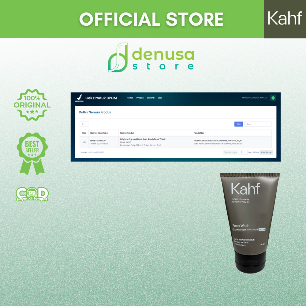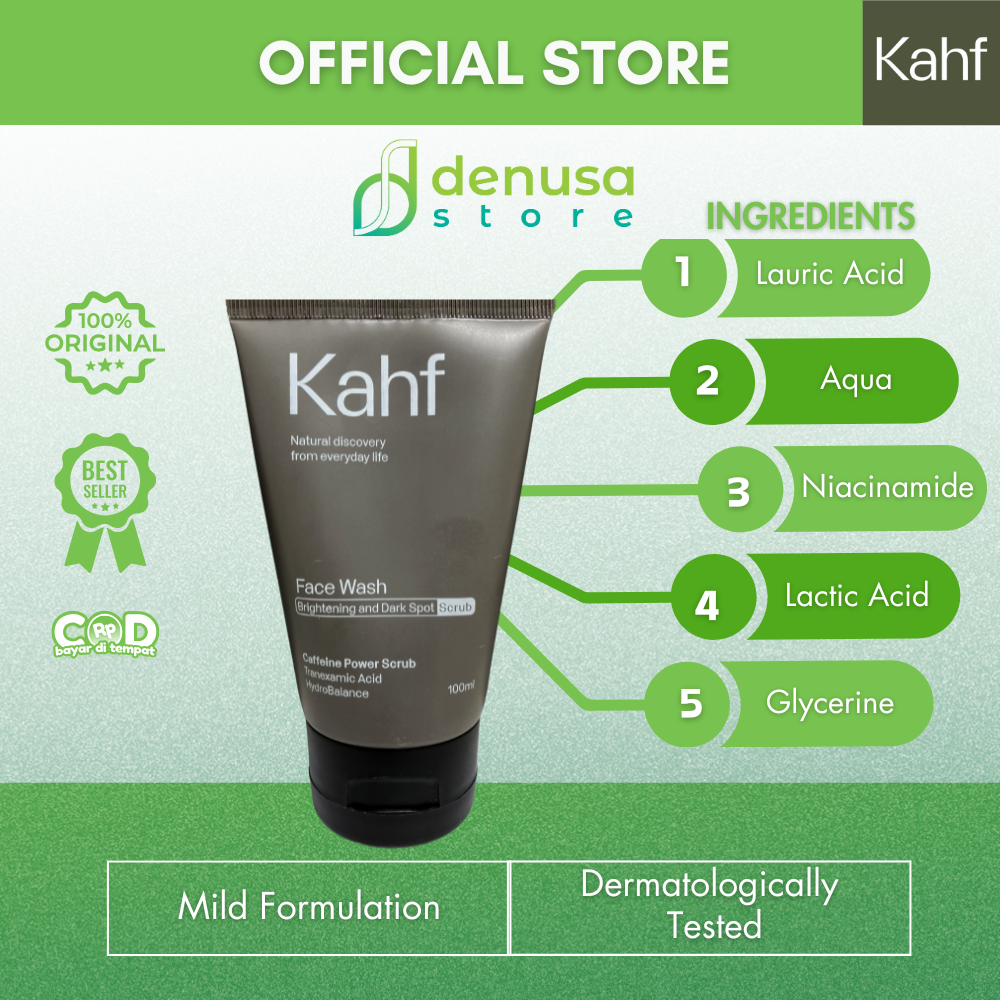 Beli KAHF Face Wash Brightening and Dark Spot Scrub 100ml hanya di denusastore.com. Rawat kulit wajah dengan pembersih yang lembut.
