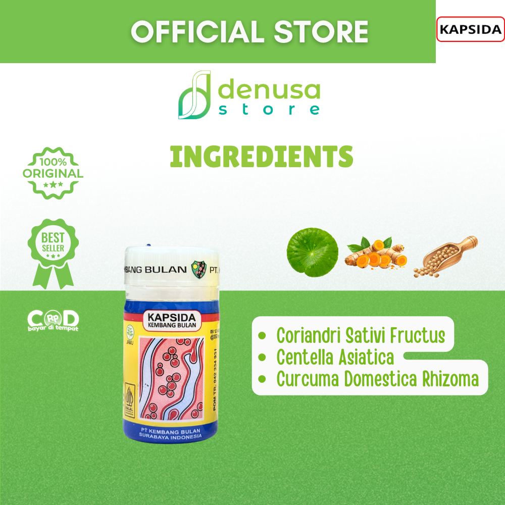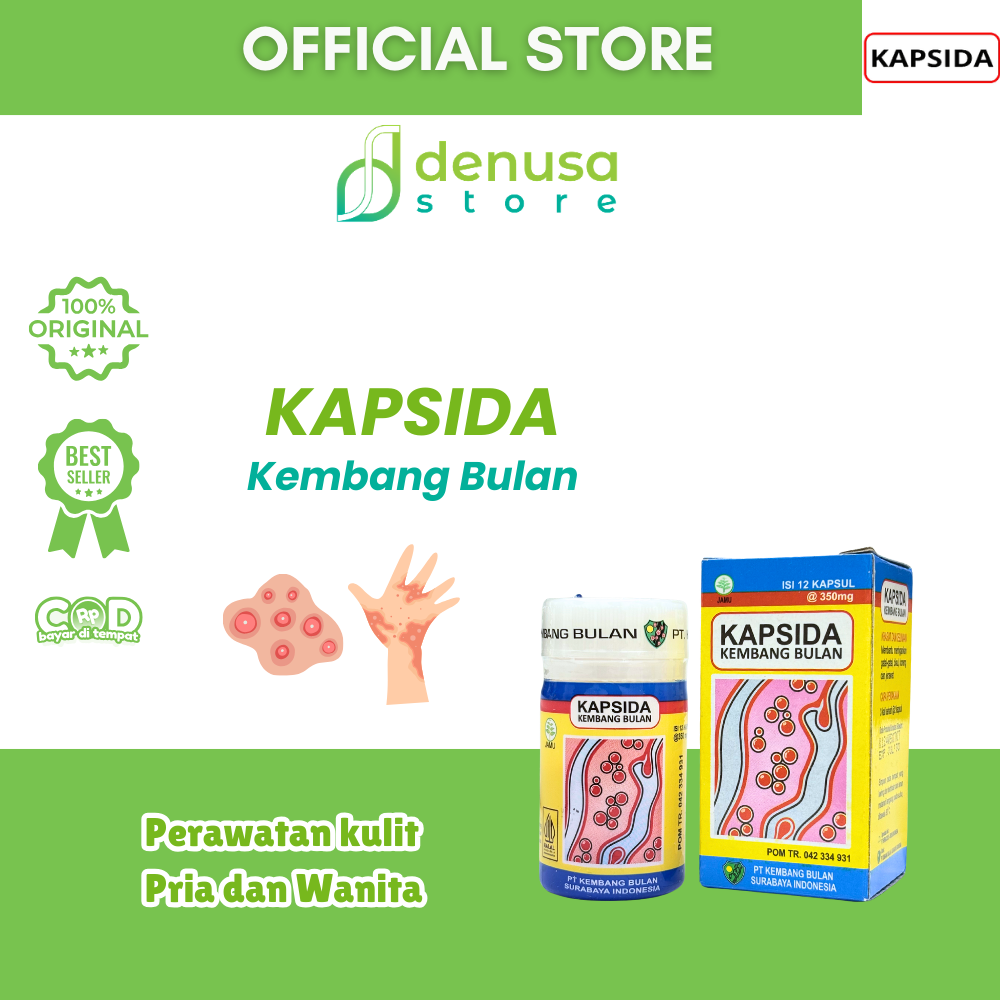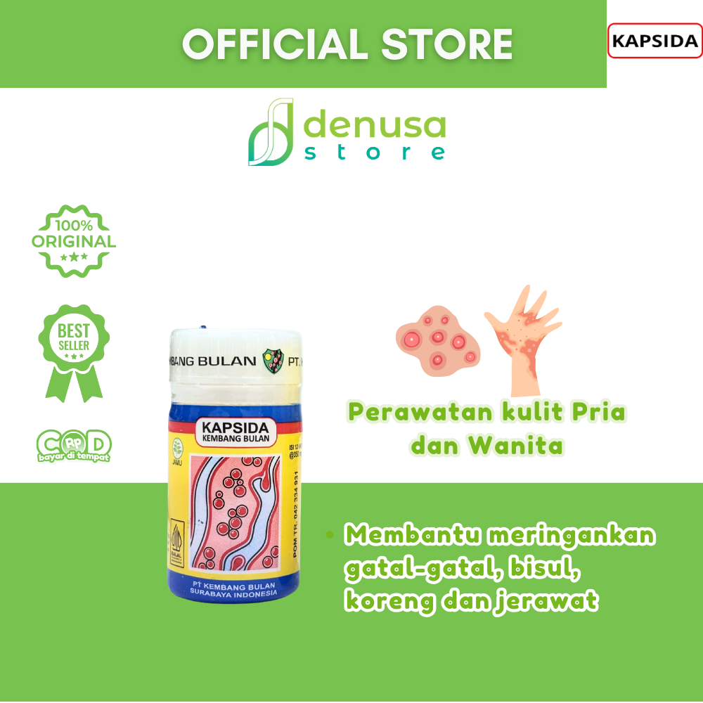 Beli KAPSIDA Kembang Bulan 1 Kotak 12 Kapsul hanya di denusastore.com. Solusi praktis untuk membantu menjaga kesehatan kulit agar tetap nyaman beraktivitas setiap hari.