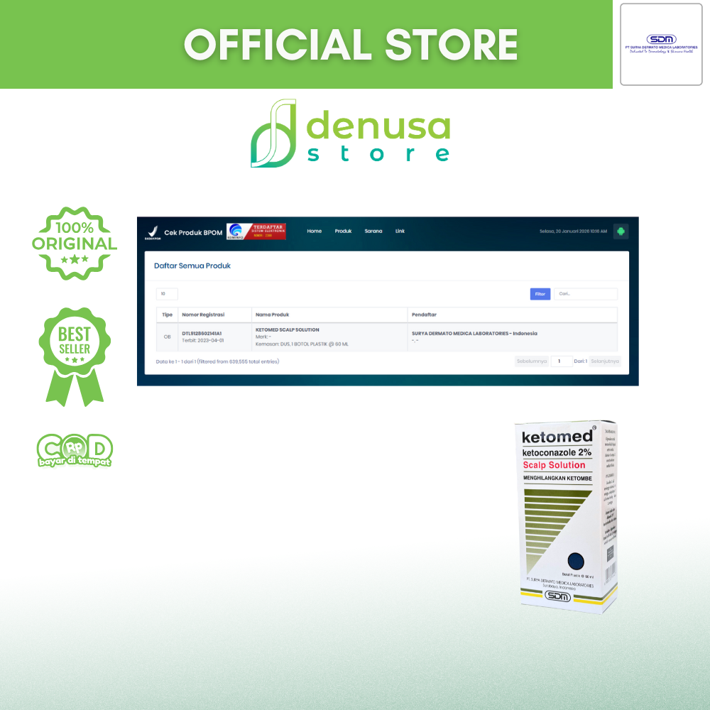 Beli KETOMED Ketoconazole 2% Menghilangkan Ketombe 60 ml hanya di denusastore.com. Solusi tepat untuk kulit kepala bebas ketombe dan rambut lebih nyaman setiap hari!