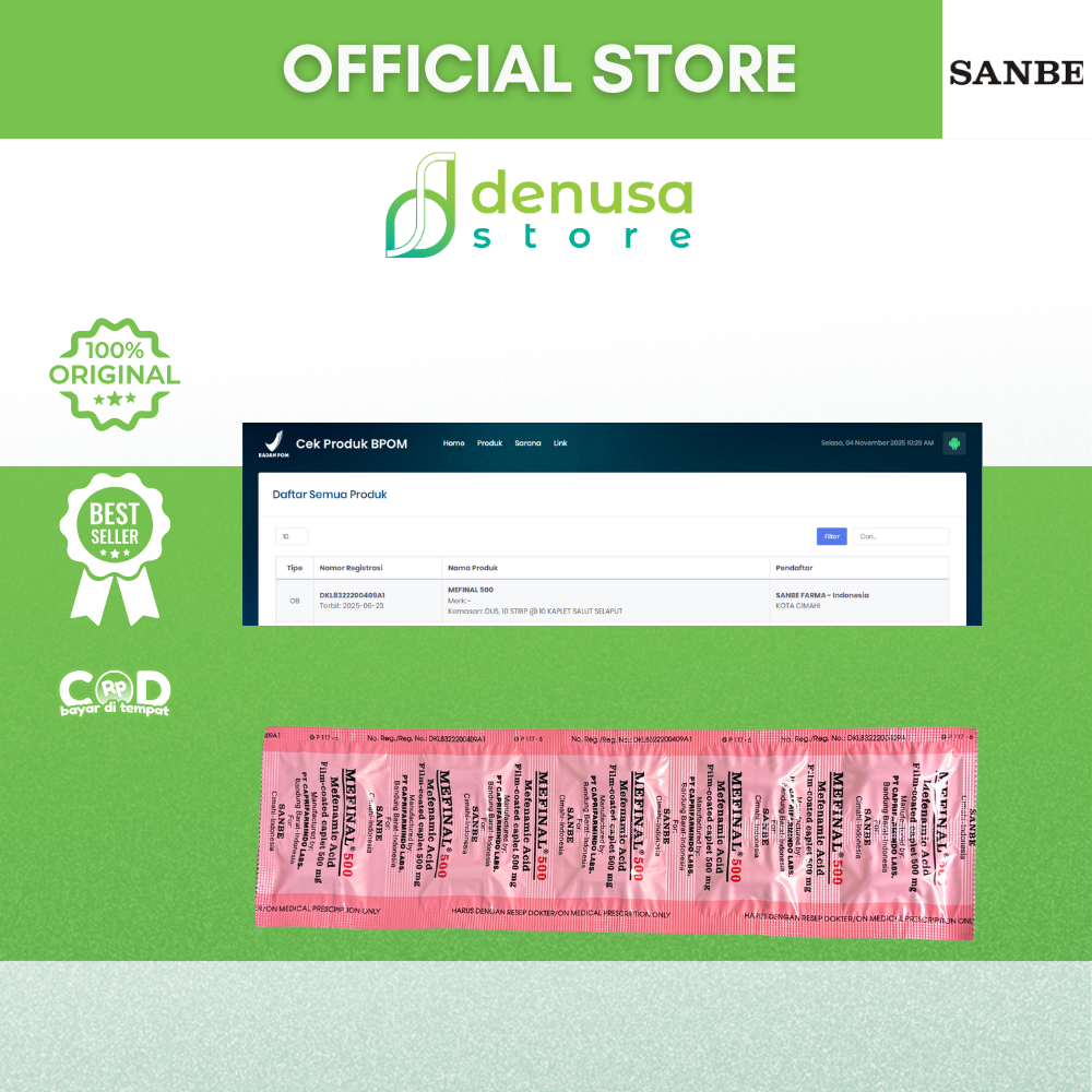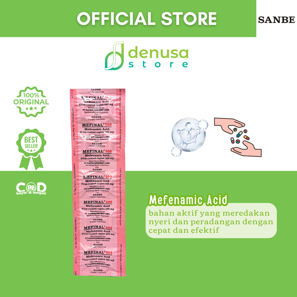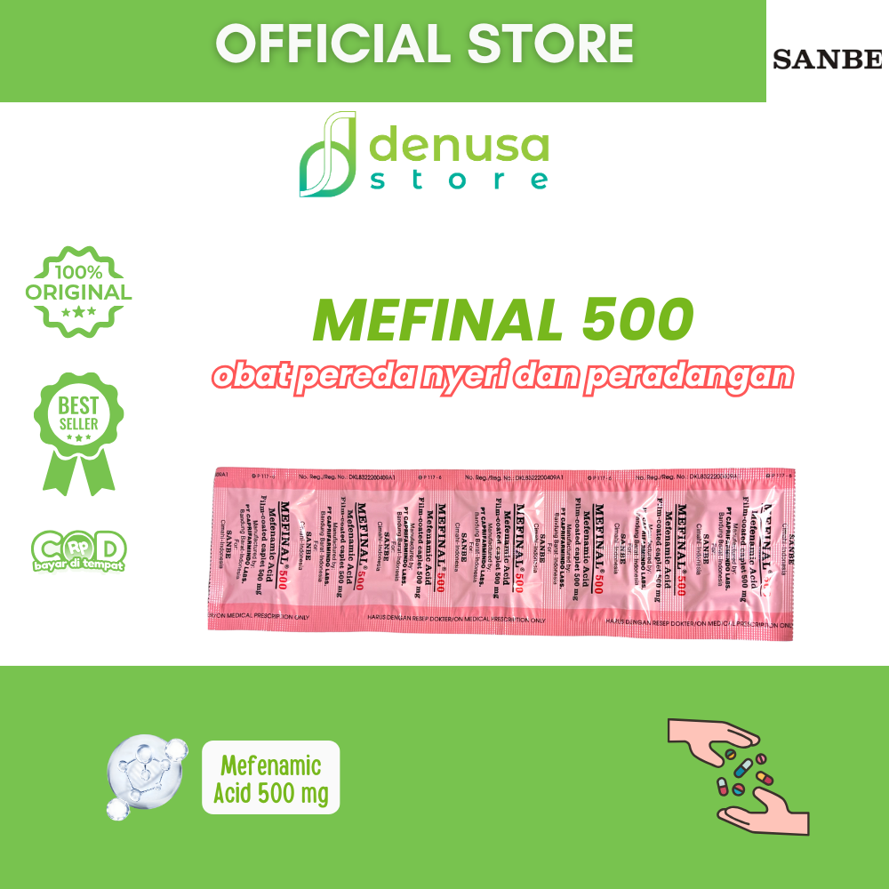 Beli MEFINAL 500 Mefenamic Acid 1 Strip 10 Kaplet hanya di denusastore.com. Dapatkan pereda nyeri yang efektif dan aman untuk kebutuhan Anda!