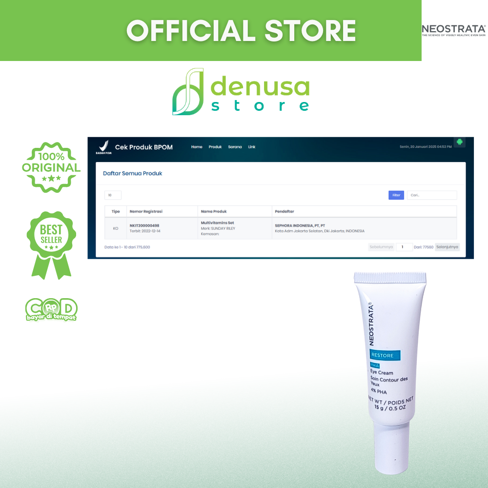 Beli NEOSTRATA Restore Eye Cream 4% PHA 15 g hanya di .denusastore.com. Pilihan tepat untuk kamu yang mencari krim mata anti-aging dengan formula lembut namun efektif.