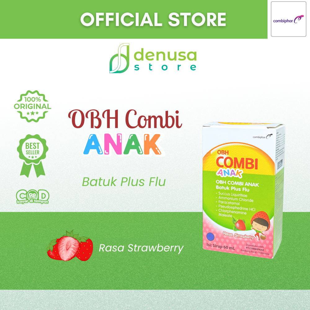 Beli OBH COMBI Anak Batuk Plus Flu Rasa Strawberry Sirup 60 ml hanya di denusastore.com. Dapatkan perawatan aman. Untuk bantu meredakan gejala batuk dan flu pada anak setiap hari!