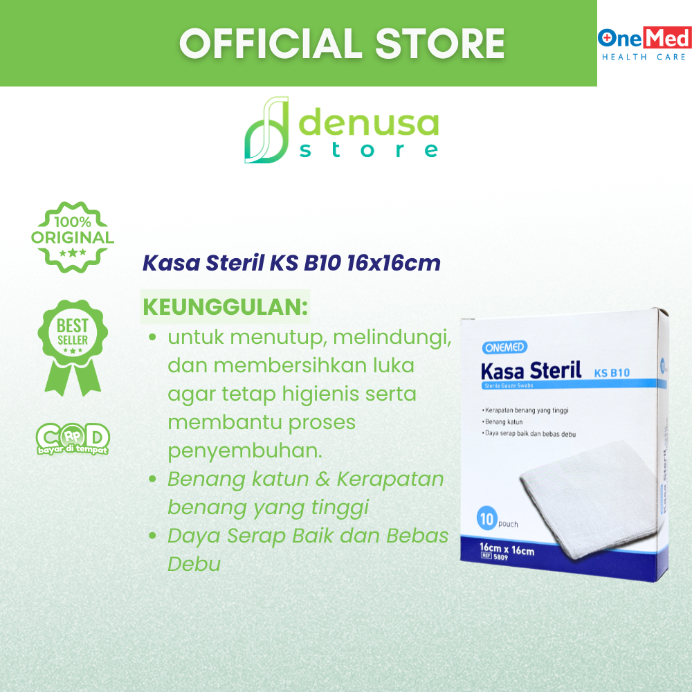 Beli OneMed Kasa Steril KS B10 16x16cm 1 Kotak 10 pouch hanya di denusastore.com. Dapatkan perlengkapan medis yang aman, higienis, dan praktis untuk kebutuhan perawatan luka Anda.