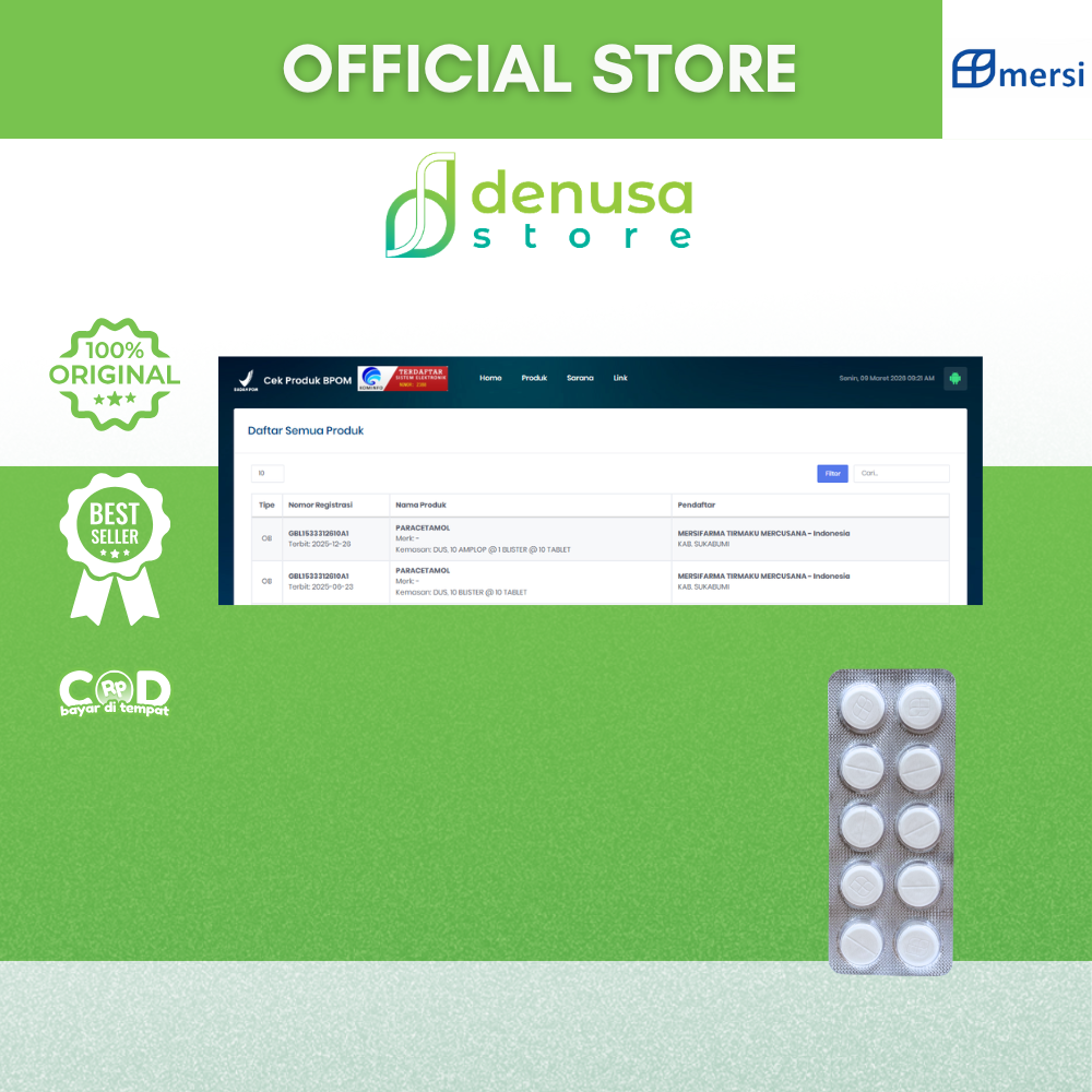 Beli Paracetamol 500 mg 1 Blister 10 Tablets Mersi hanya di denusastore.com. Pilihan tepat untuk kebutuhan terapi sesuai anjuran dokter.