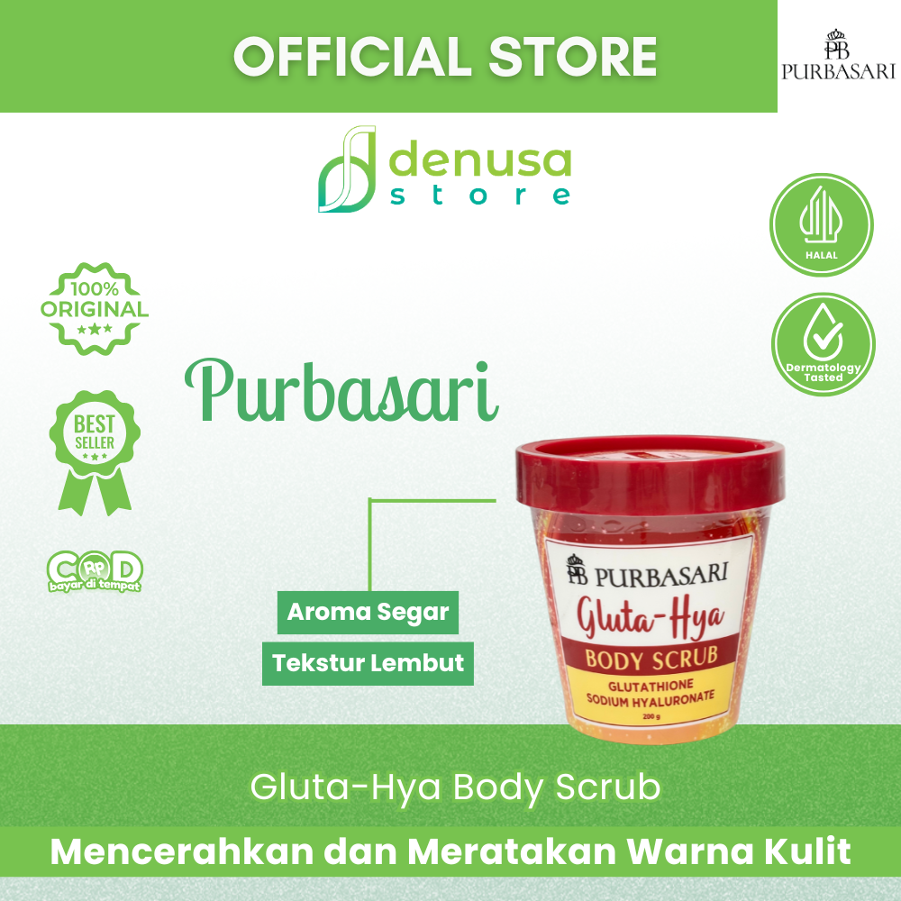 Beli PURBASARI Gluta-Hya Body Scrub Glutathione Sodium Hyaluronate 200 g hanya di denusastore.com.. Solusi perawatan tubuh praktis untuk kulit bersih, lembap, dan terawat setiap hari.