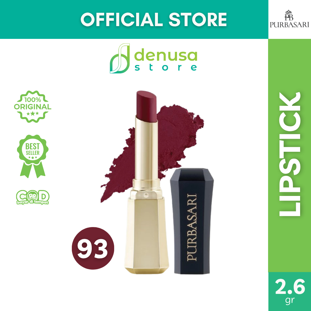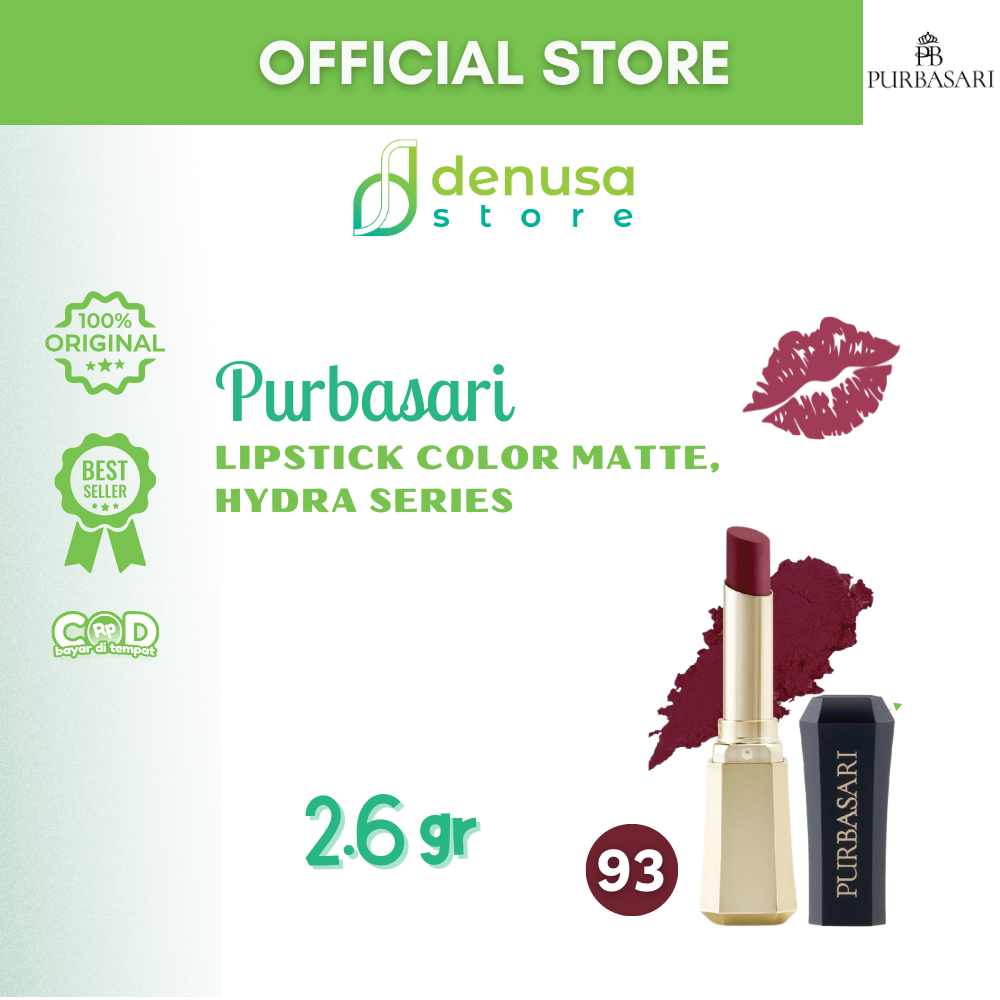 PURBASARI Lipstick Color Matte Hydra Series 93 Beryl 2.6 g. Lipstik matte ini diperkaya Vitamin E & castor oil. Memberikan warna intens sekaligus menjaga kelembapan bibir—ringan digunakan hingga 12 jam tanpa rasa kering atau membuat bibir pecah.