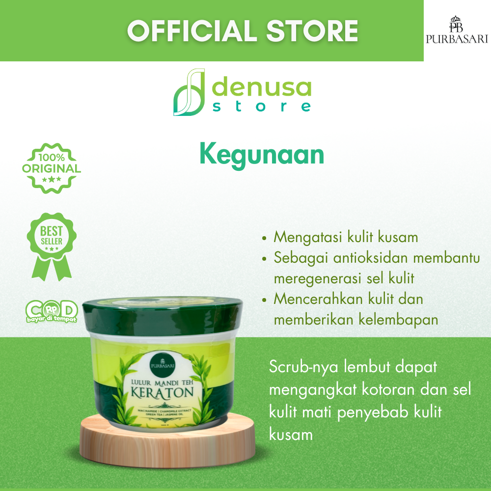 Beli PURBASARI Lulur Mandi Teh Keraton 100 gram hanya di denusastore.com. Solusi perawatan tubuh praktis untuk membantu mendapatkan kulit bersih, halus, dan segar setiap hari.