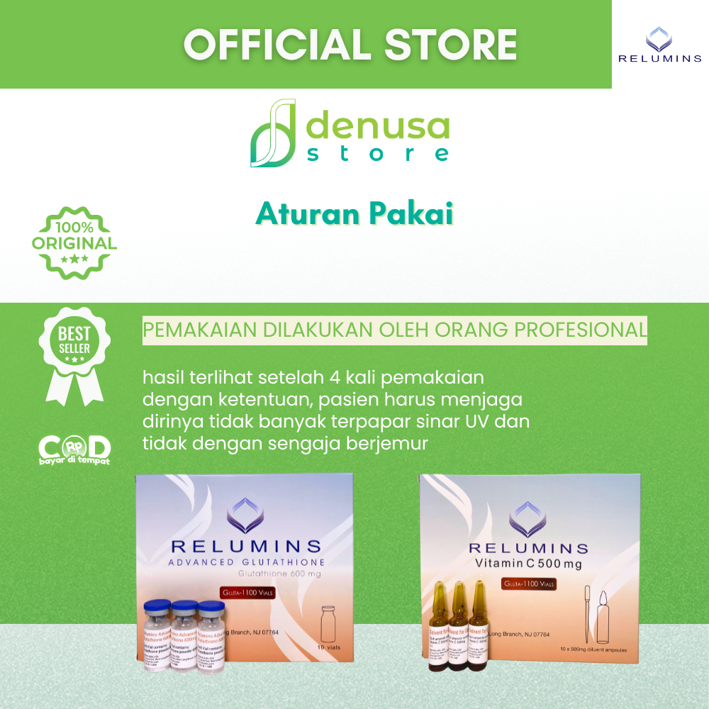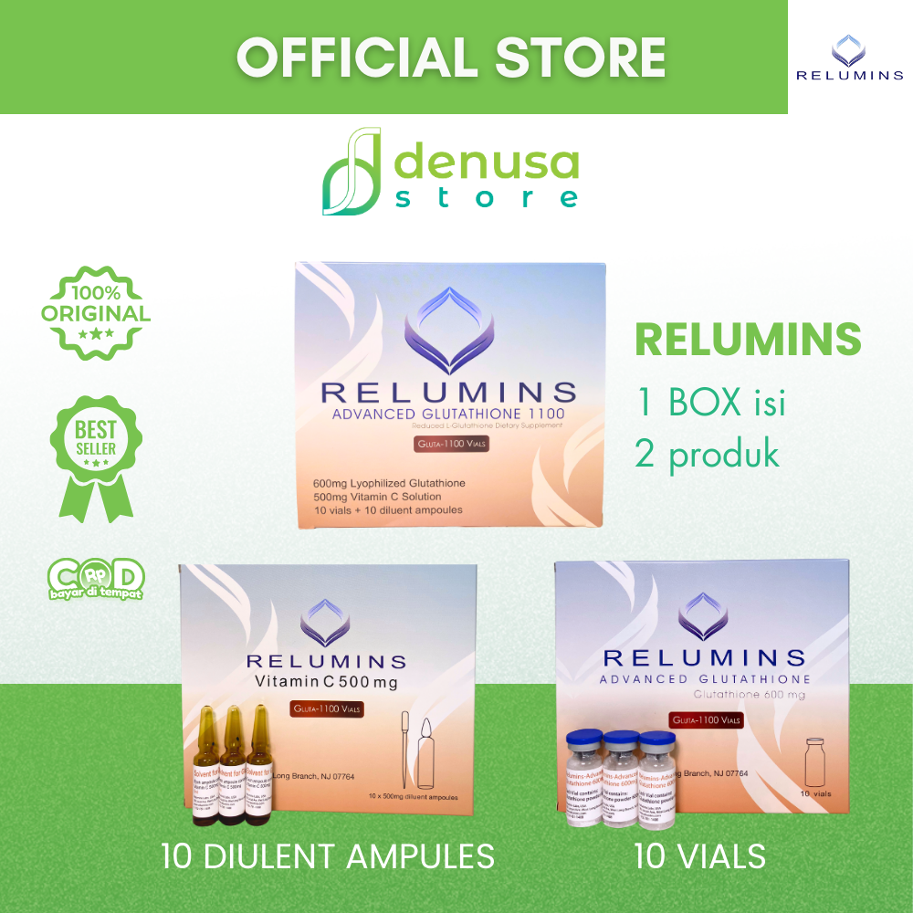 Beli Relumins Advanced Glutathione 1100 1 Box | Isi 10 Vials + 10 Diulent Ampules di denusastore.com. dapatkan manfaatnya.
