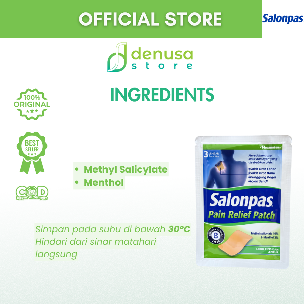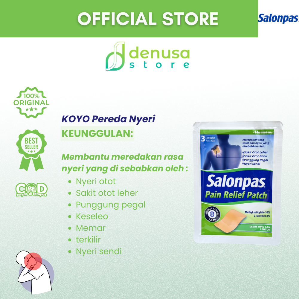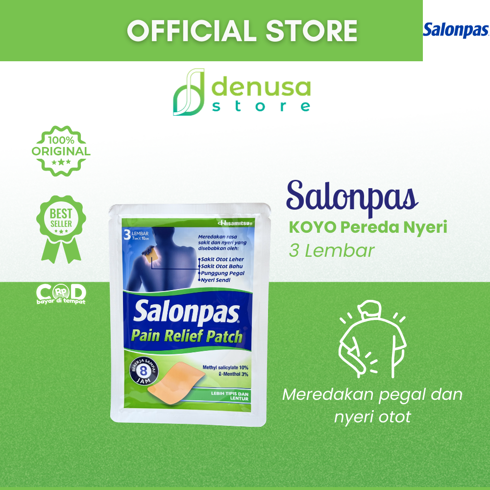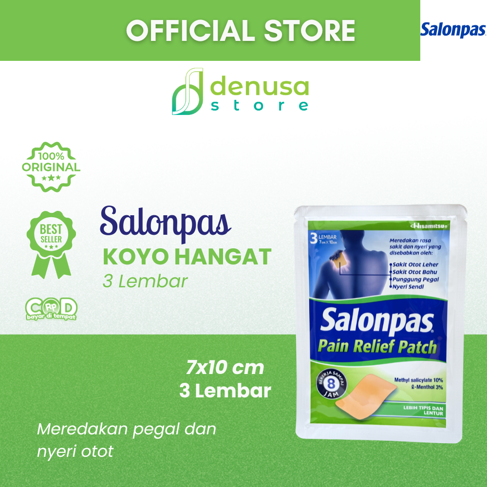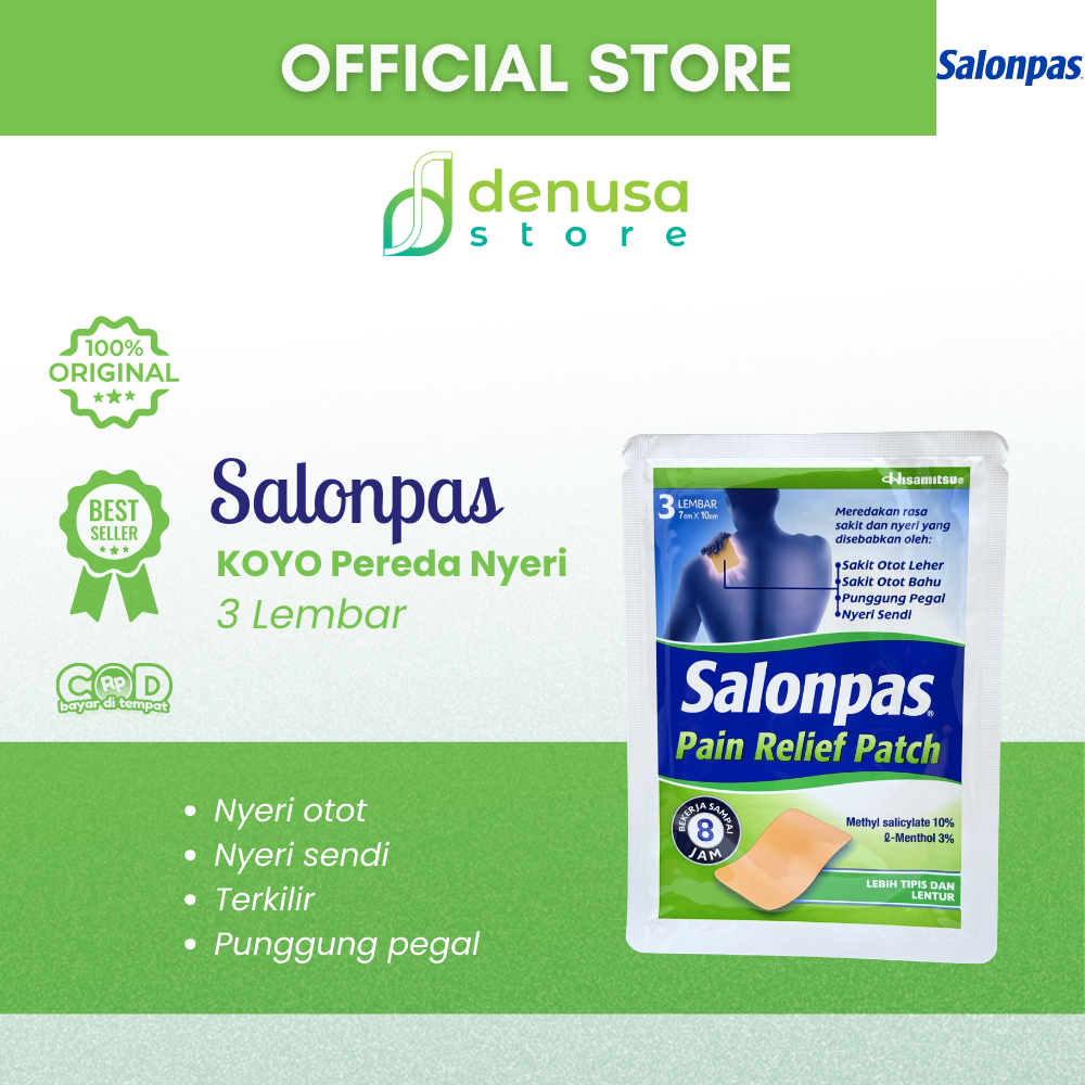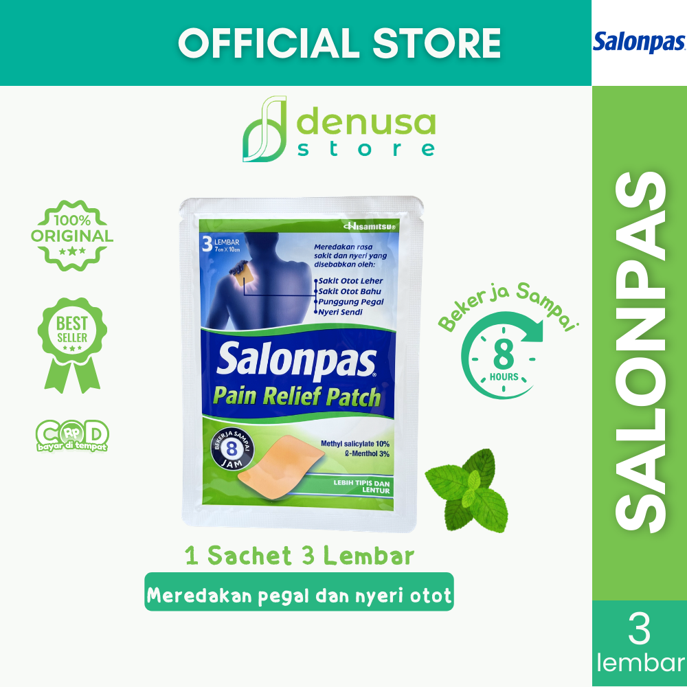 Beli SALONPAS Pain Relief Patch 1 Sachet 7x10cm 3 Lembar hanya di denusastore.com. Solusi praktis untuk membantu meredakan nyeri otot dan sendi agar tetap nyaman beraktivitas setiap hari.