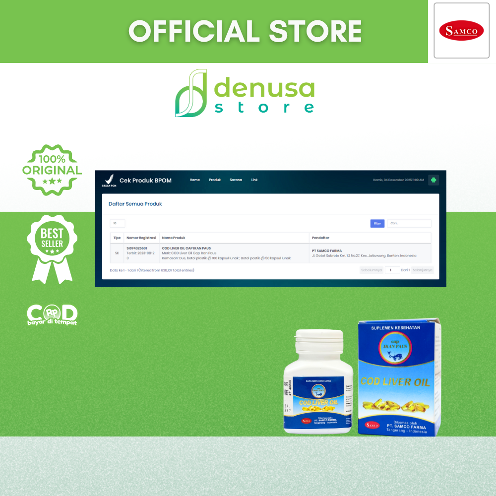 Beli SAMCO Cod Liver Oil 100 Kapsul hanya di denusastore.com. Suplemen harian praktis. Untuk mendukung kesehatan secara menyeluruh!