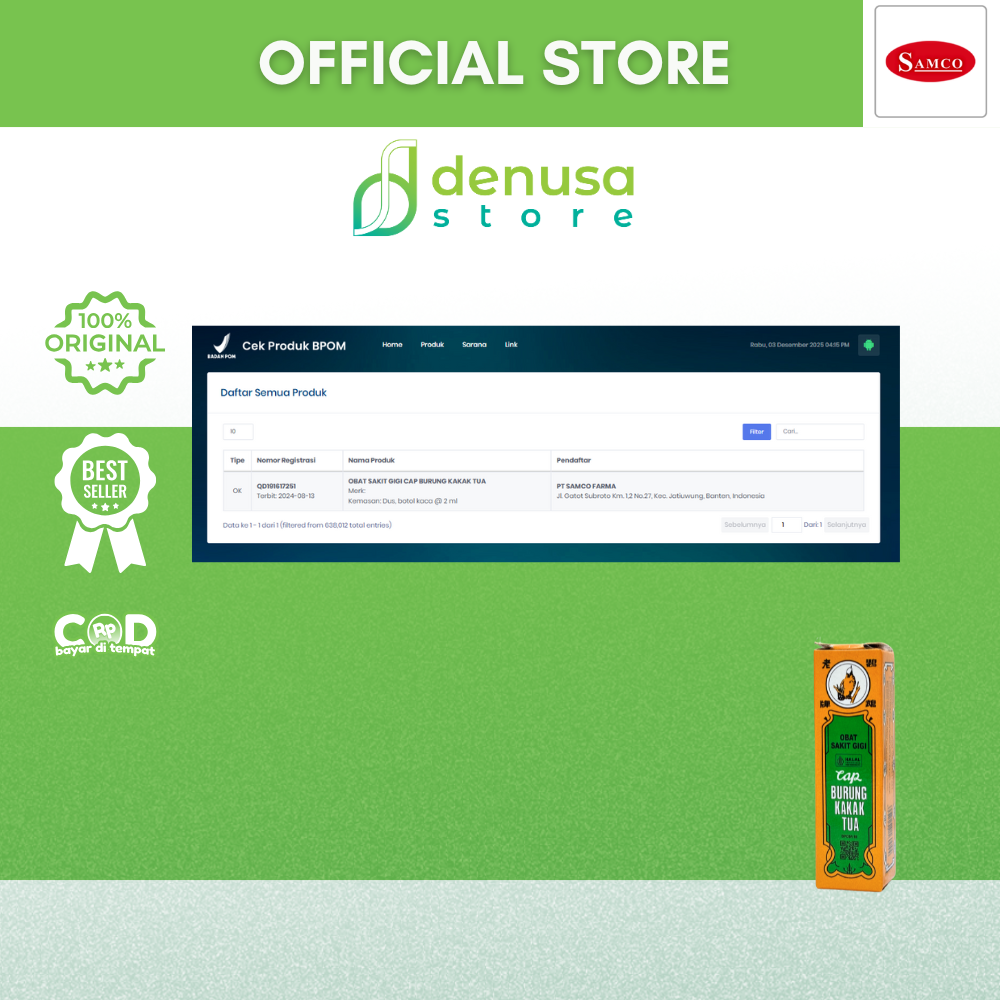 Beli SAMCO Obat Sakit Gigi Cap Burung Kakak Tua 2 ml hanya di .denusastore.com. Obat tradisional praktis untuk membantu meredakan nyeri gigi secara cepat!